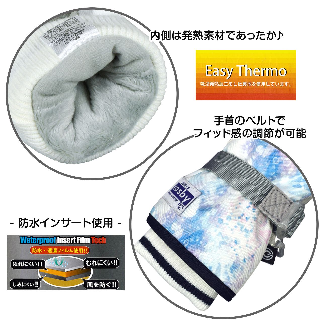スキーグローブ cosby ジュニア 子供 女の子 吸湿発熱加工 五本指 スキー手袋 防寒 ○ 商品型番:CS-7112AS