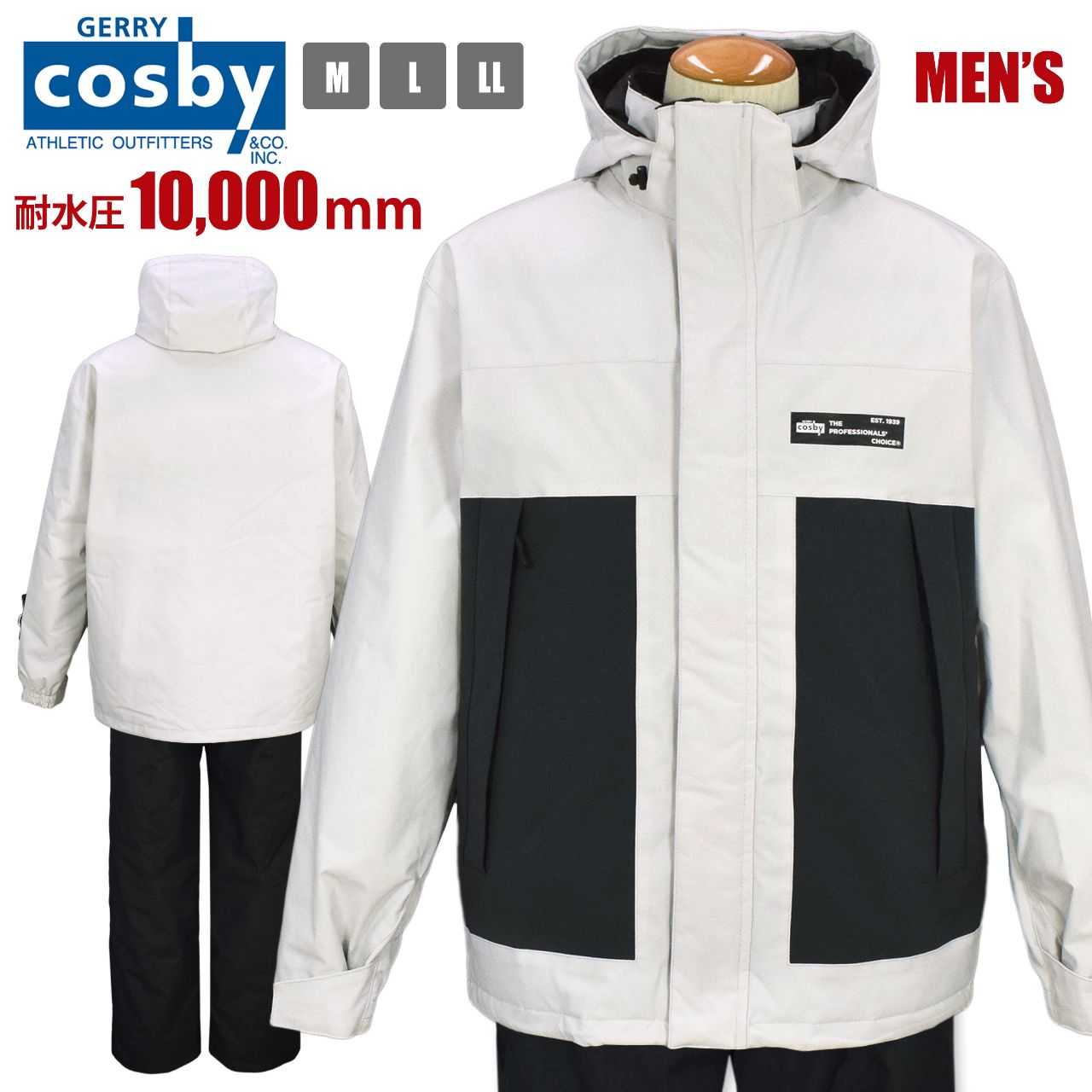 ☆ 商 品 説 明 ☆ cosby コスビー 耐水圧10000mm メンズ スキーウェア 。 配色切替 前立てロゴ入りがおしゃれな スノーウェア 上下セットアップ です。【ジャケット】 襟裏は発熱素材で温か。防水・防風性 を発揮し雪、雨、風の侵入を防ぎます。袖口は一部ゴム、マジックテープ留め。ファスナーガード あり。フード は取り外し不可。前面にファスナー付きポケットが2つ。左側に内ポケット1つ。収納可能な パスケース つき(左袖)。裾はドローコード付き。 【パンツ】 サスペンダー は取り外し可能(マジックテープ)。ウェストは一部ゴム・サイドマジックテープ。サイドファスナーを開くと広がりゆったり履ける ウエストフレックス仕様。フロントはスナップボタン・ファスナー。ファスナー付きポケット2つ。スノーガード、エッジガードあり。