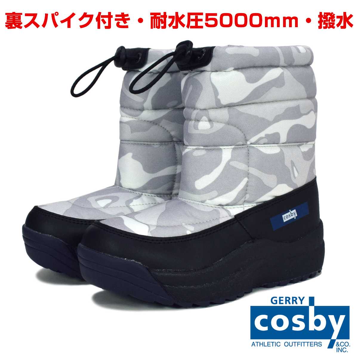 ☆ 商 品 説 明 ☆ cosby コスビー 撥水 耐水圧5000mm スパイク付き スノーブーツ。 耐水圧コーティングなので、防水・防風性を発揮し雪・雨・風の浸入を防ぎます。(完全防水ではありません) 靴底には 収納式 のスパイクが付いていて 防滑 になります。ソールは 滑りにくい パターンを採用。履き口はドローコードで絞って調節可能。多機能 なので通学などの普段使いや雪遊びにもおすすめ。