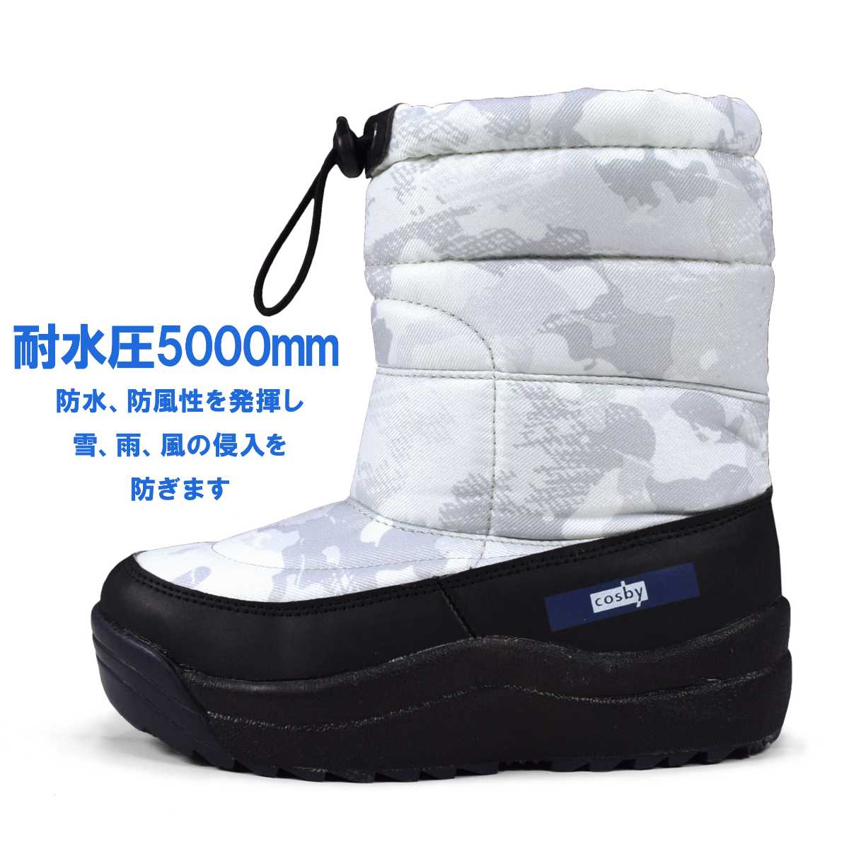 ☆ 商 品 説 明 ☆ cosby コスビー 撥水 耐水圧5000mm スパイク付き スノーブーツ。 耐水圧コーティングなので、防水・防風性を発揮し雪・雨・風の浸入を防ぎます。(完全防水ではありません) 靴底には 収納式 のスパイクが付いていて 防滑 になります。ソールは 滑りにくい パターンを採用。履き口はドローコードで絞って調節可能。多機能 なので通学などの普段使いや雪遊びにもおすすめ。