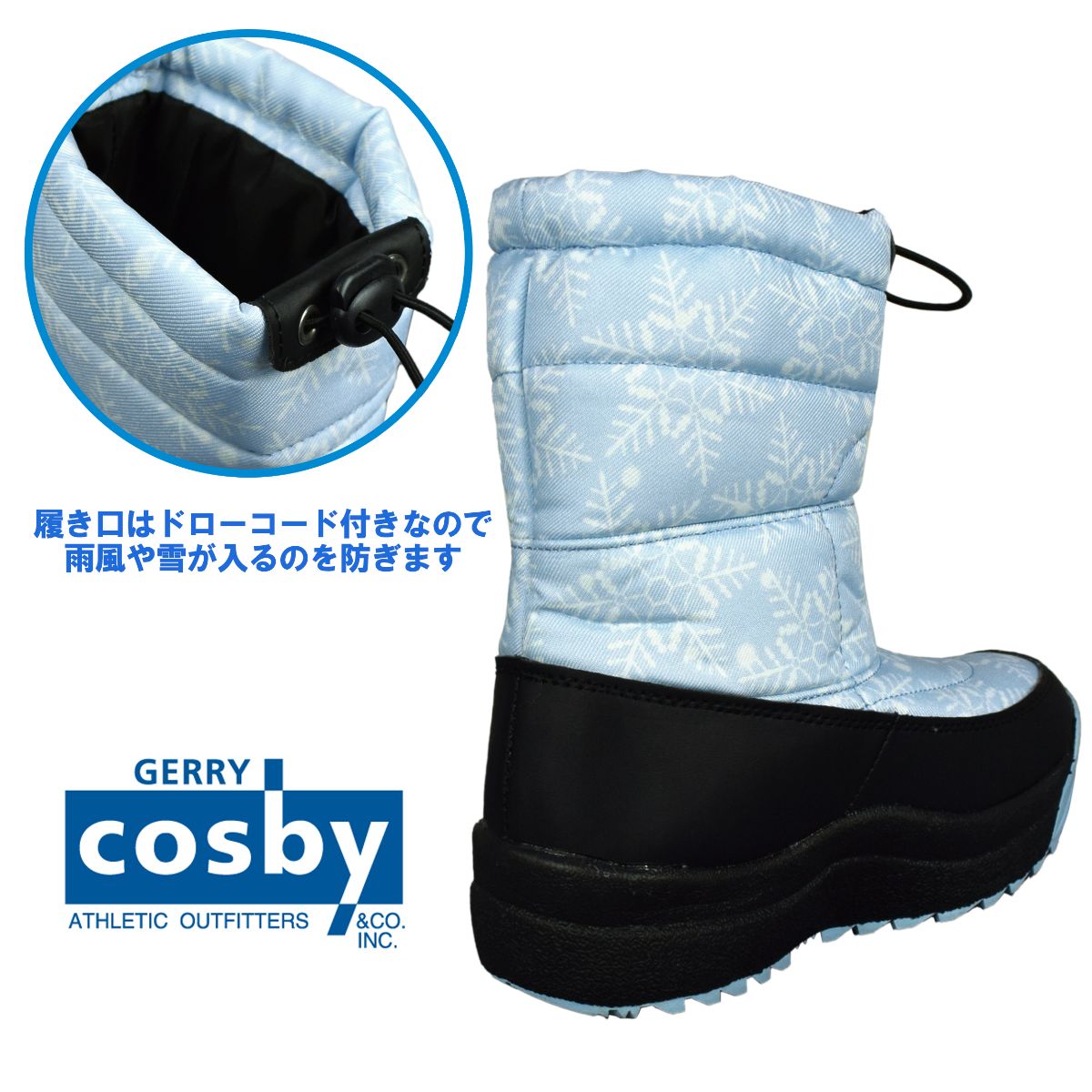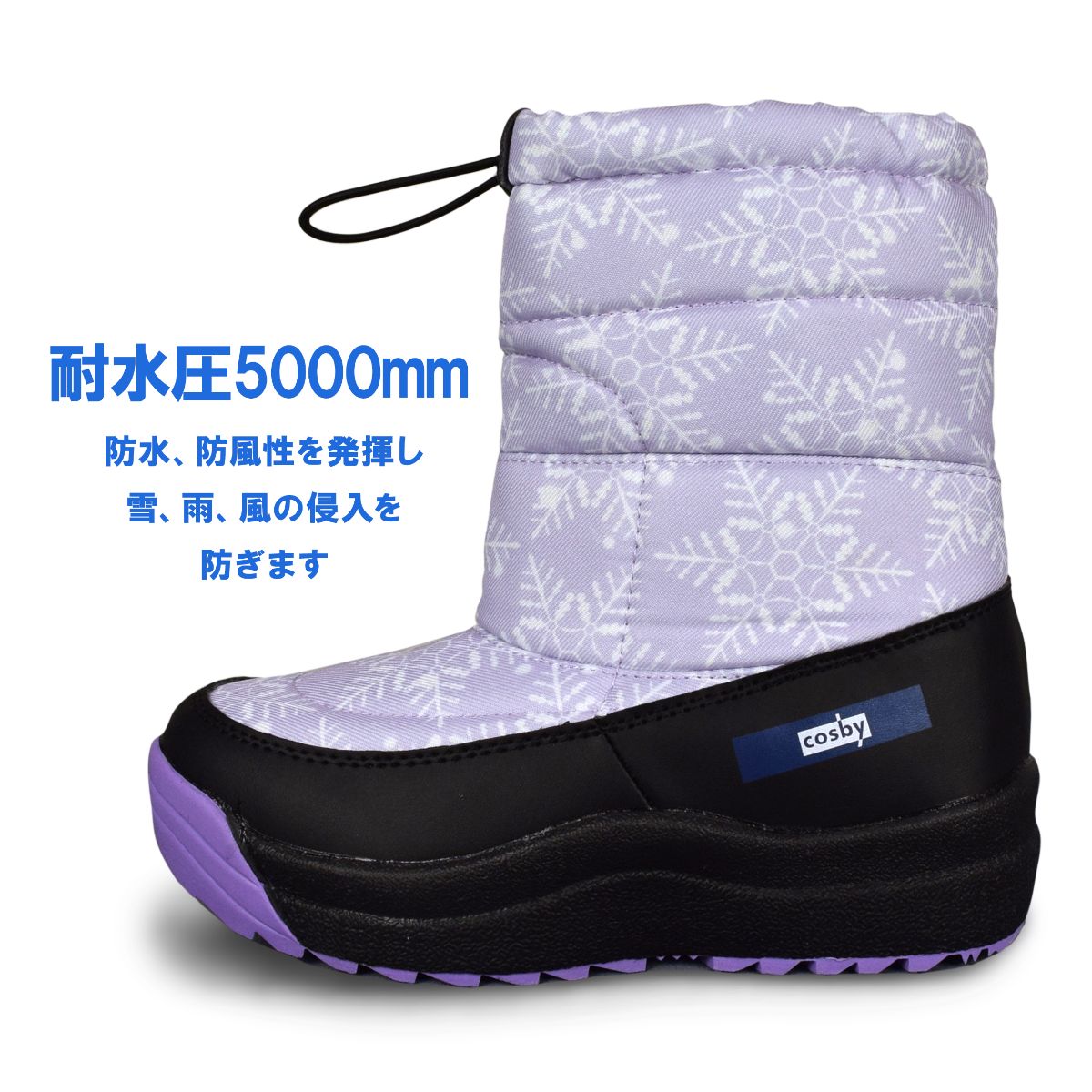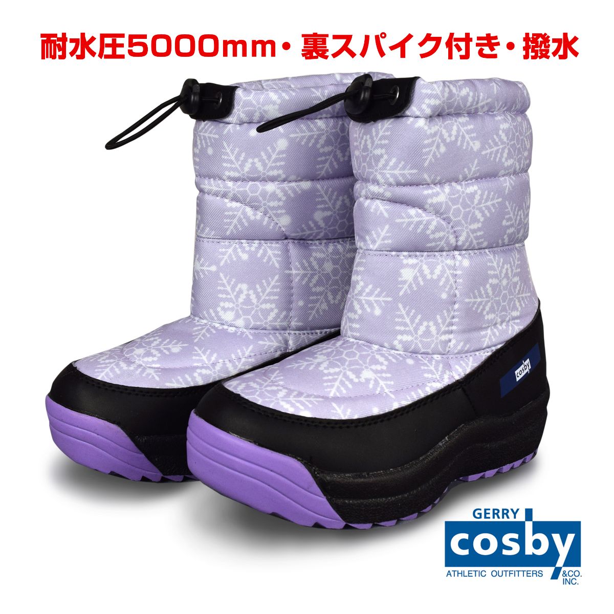 ☆ 商 品 説 明 ☆ cosby コスビー 撥水 耐水圧5000mm スパイク付き スノーブーツ。 耐水圧コーティングなので、防水・防風性を発揮し雪・雨・風の浸入を防ぎます。(完全防水ではありません) 靴底には 収納式 のスパイクが付いていて 防滑 になります。ソールは 滑りにくい パターンを採用。履き口はドローコードで絞って調節可能。多機能 なので通学などの普段使いや雪遊びにもおすすめ。 ※ 柄の出方は個々の商品によってそれぞれ異なります。