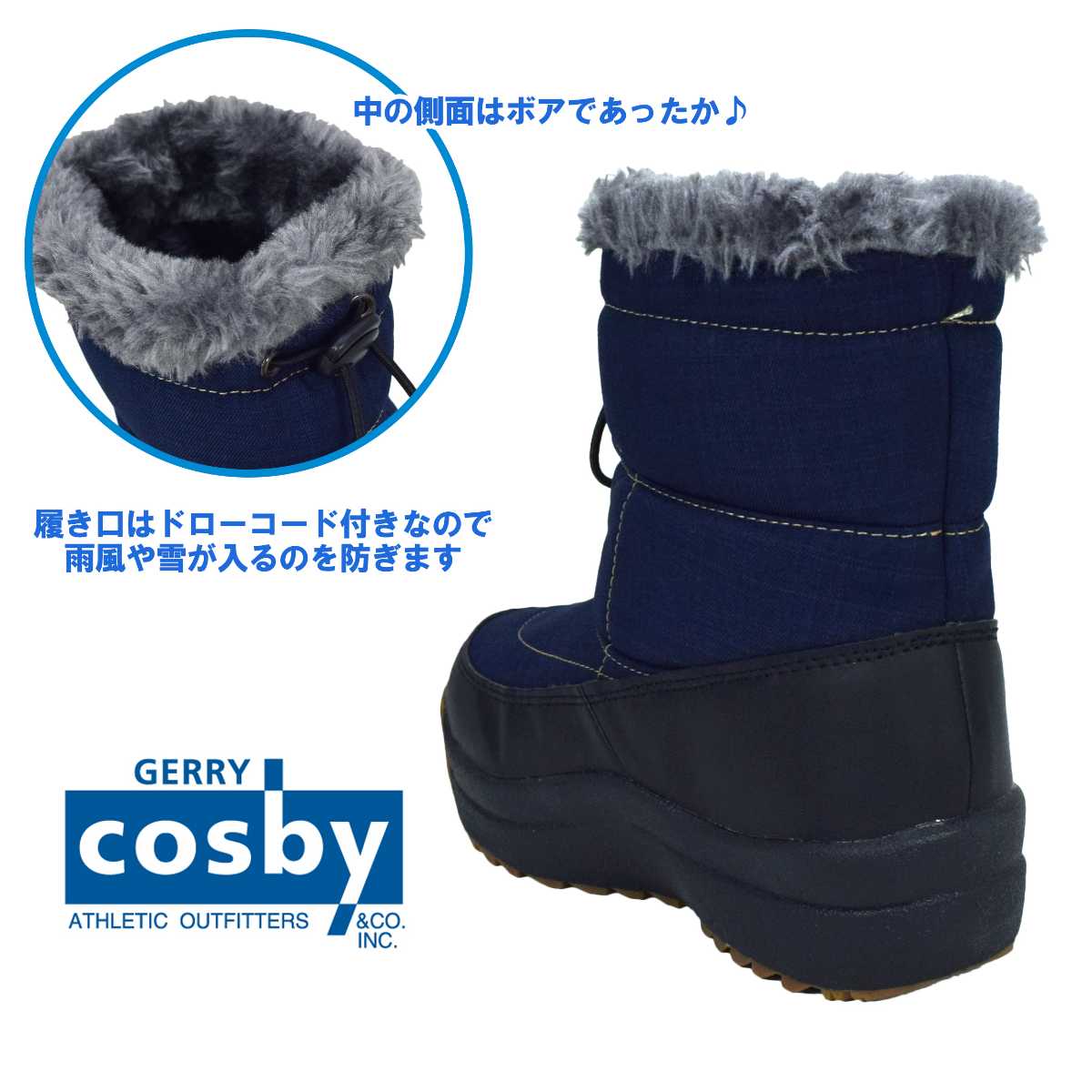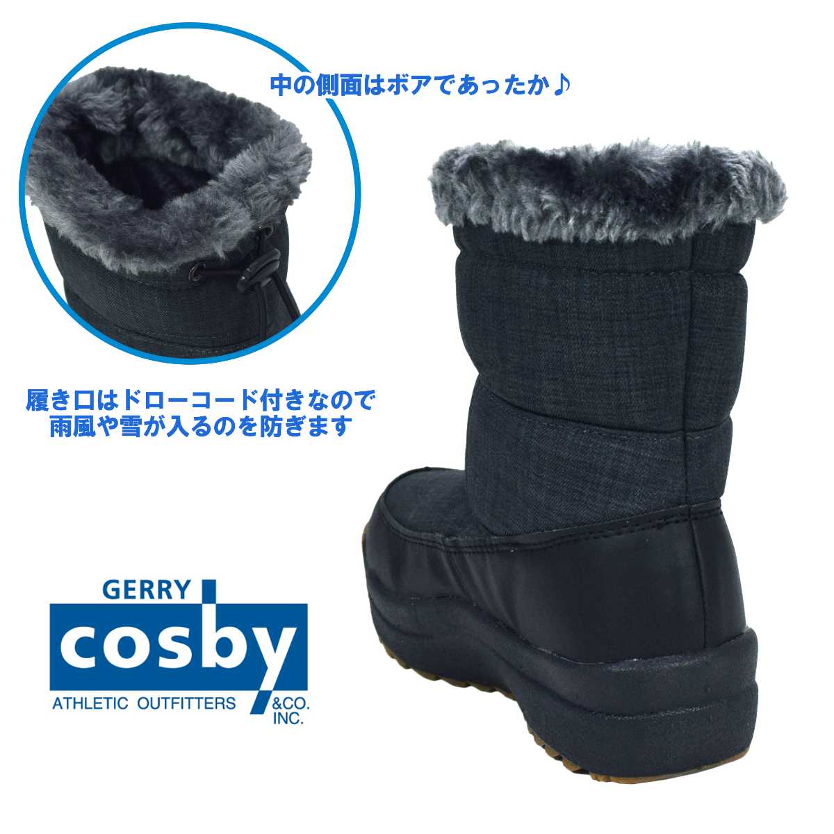 ☆ 商 品 説 明 ☆ cosby コスビー 撥水 耐水圧5000mm スパイク付き 裏ボア スノーブーツ。 耐水圧コーティングなので、防水・防風性を発揮し雪・雨・風の浸入を防ぎます。(完全防水ではありません) あったか 裏ボア仕様で 防寒 対策もバッチリ。靴底には 収納式 のスパイクが付いているので 防滑 になります。ソールは 滑りにくい パターンを採用。履き口はドローコードで絞って調節可能です。多機能 なので通学などの普段使いや雪遊びにもおすすめ。