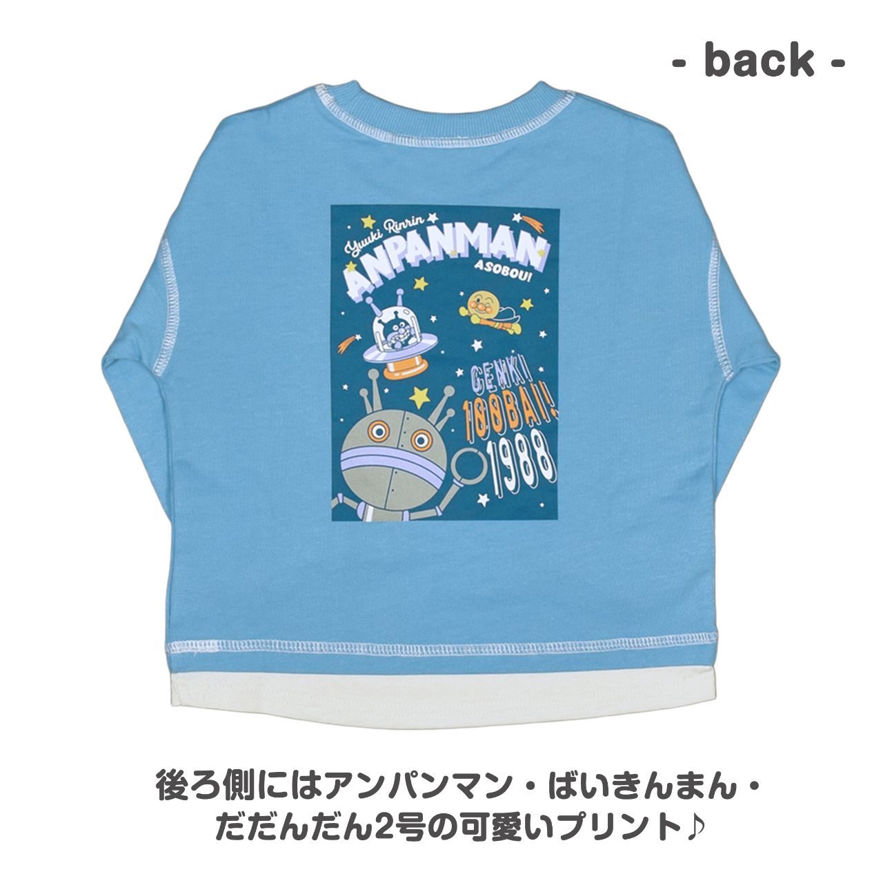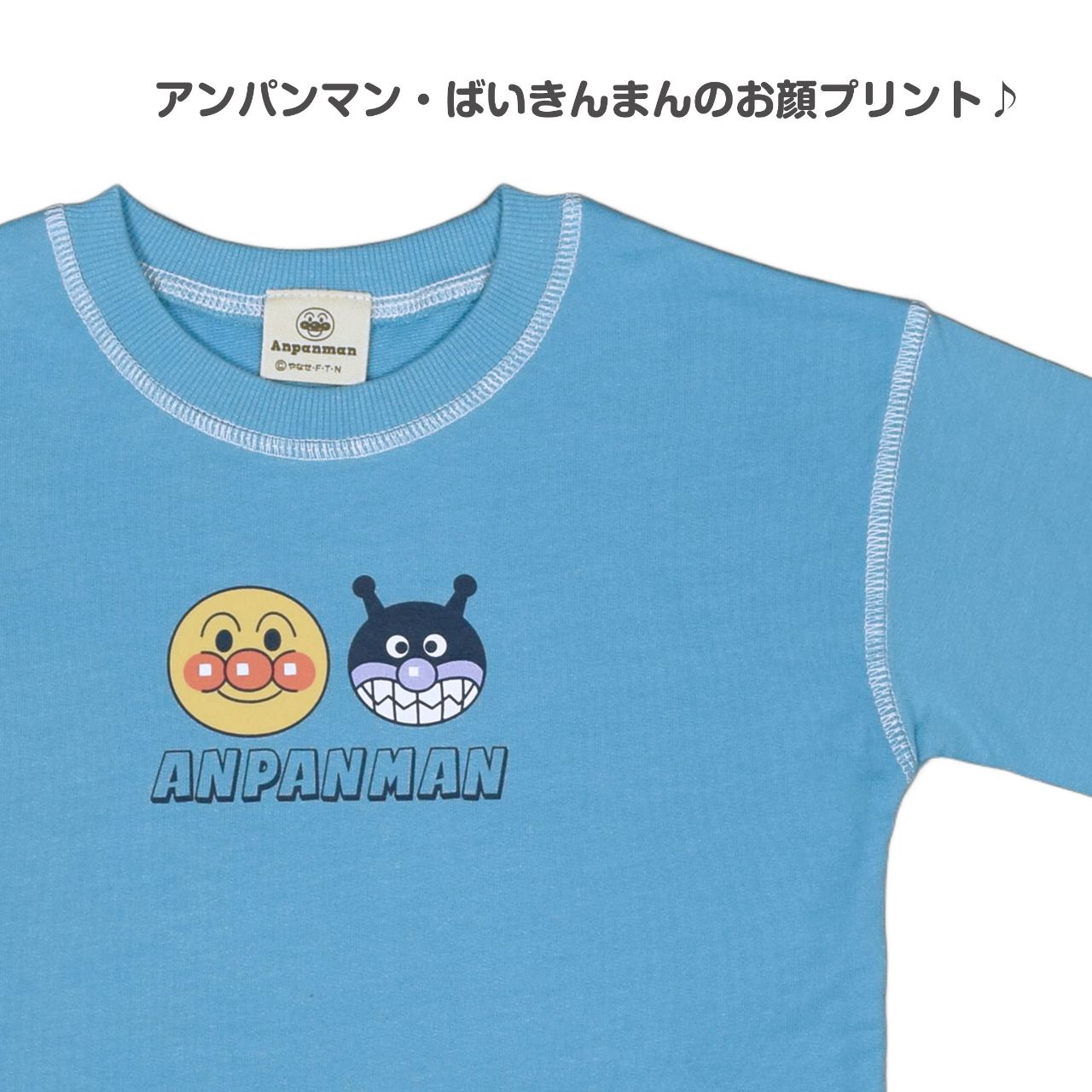 アンパンマン ばいきんまん だだんだん2号 プリント入り 裏毛スウェットシャツ 。
