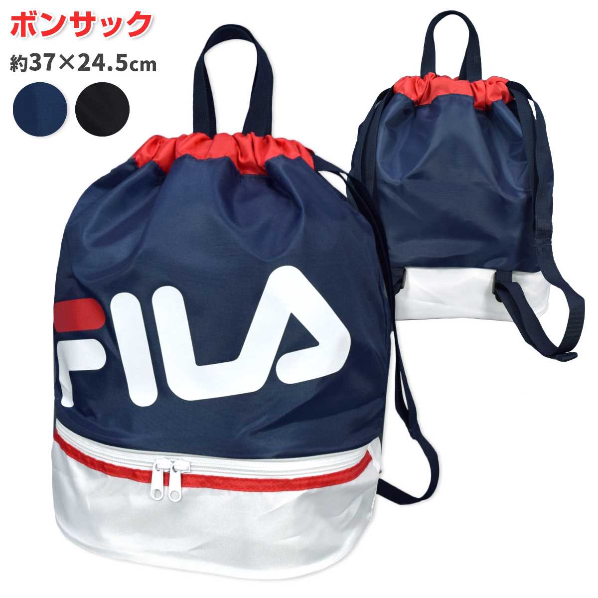 ☆ 商 品 説 明 ☆ FILA フィラ 2way ボンサック プールバック です。 ビッグロゴが かっこいい 二重底 のカバンです。2層に分かれた収納スペースで、濡れたり汚れたものなどを分けられます。底部分の収納は ダブルファスナー で開閉しやすく、小さな 持ち手 がついているので机のフックにも掛けられます。ショルダー はアジャスター付きでお好みの長さに 調節可能。内側に名前が記入できるネームタグ付き。