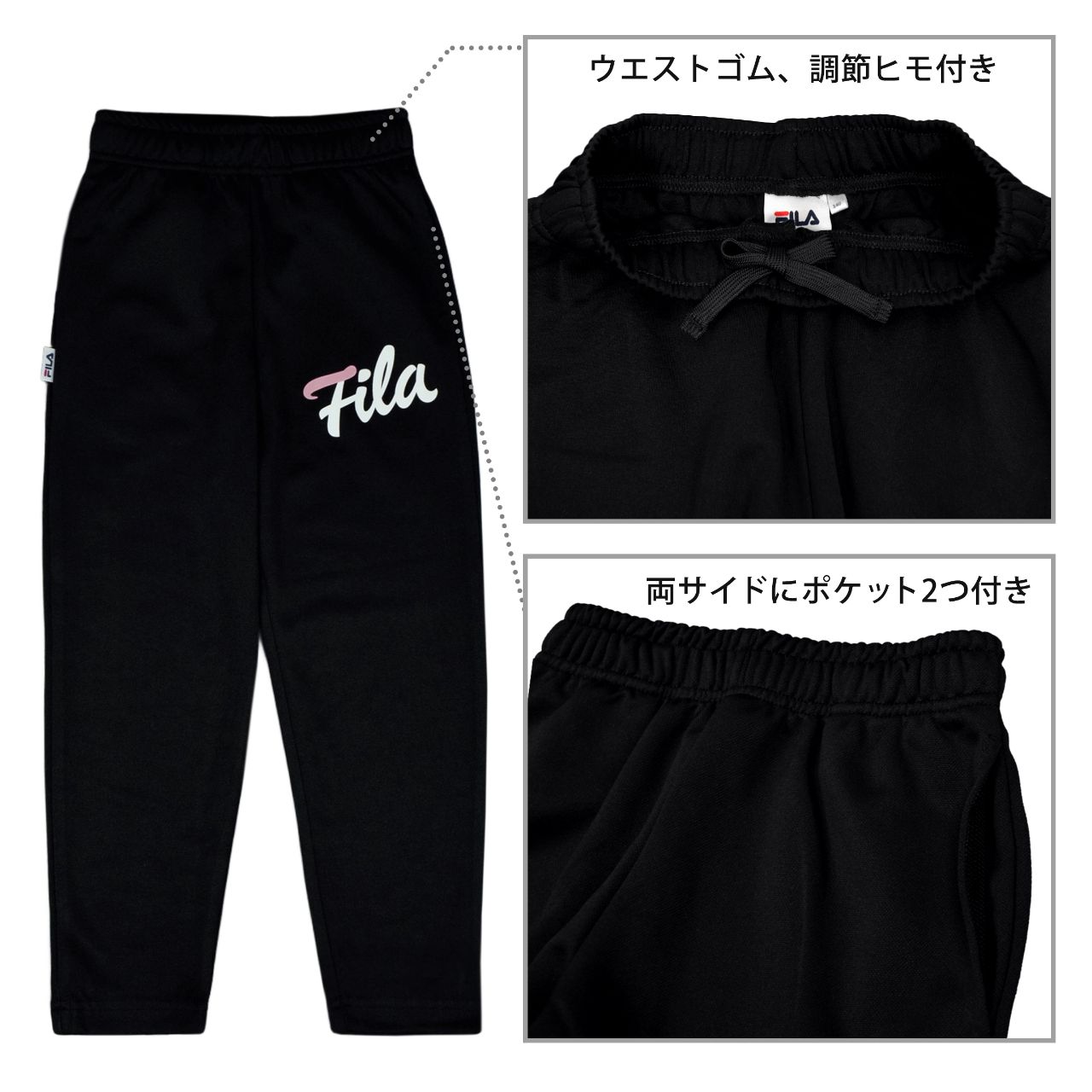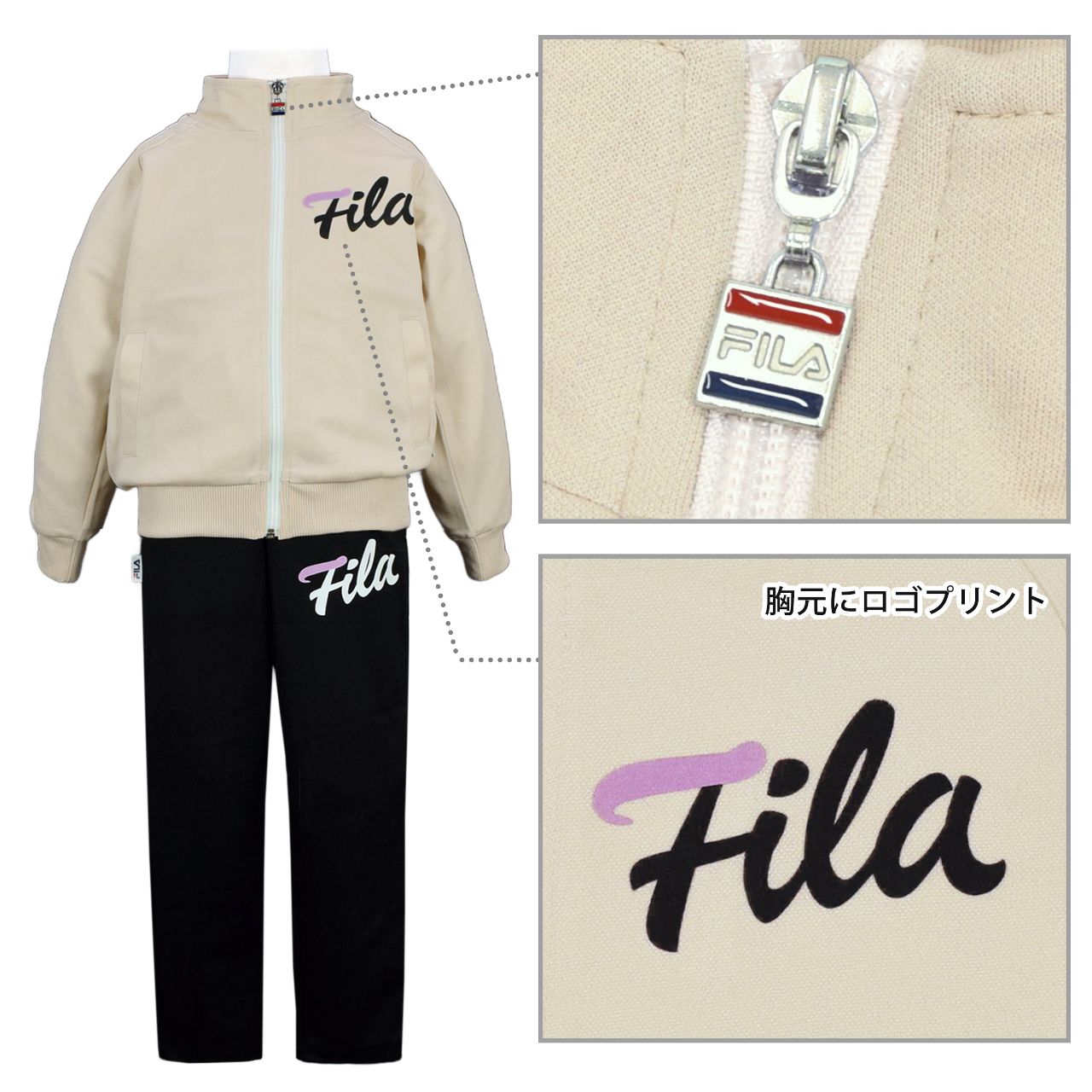 ☆ 商 品 説 明 ☆ FILA フィラ トレーニングウェア ジャージ 上下セット 。 胸には FILA のロゴプリント 袖にはロゴテープが付いたシンプルで かわいい セットアップ です。 パンツは腰部分にロゴプリント。ウエストはゴム、ひも付き。トップス、ボトムスに各2つポケットあり。