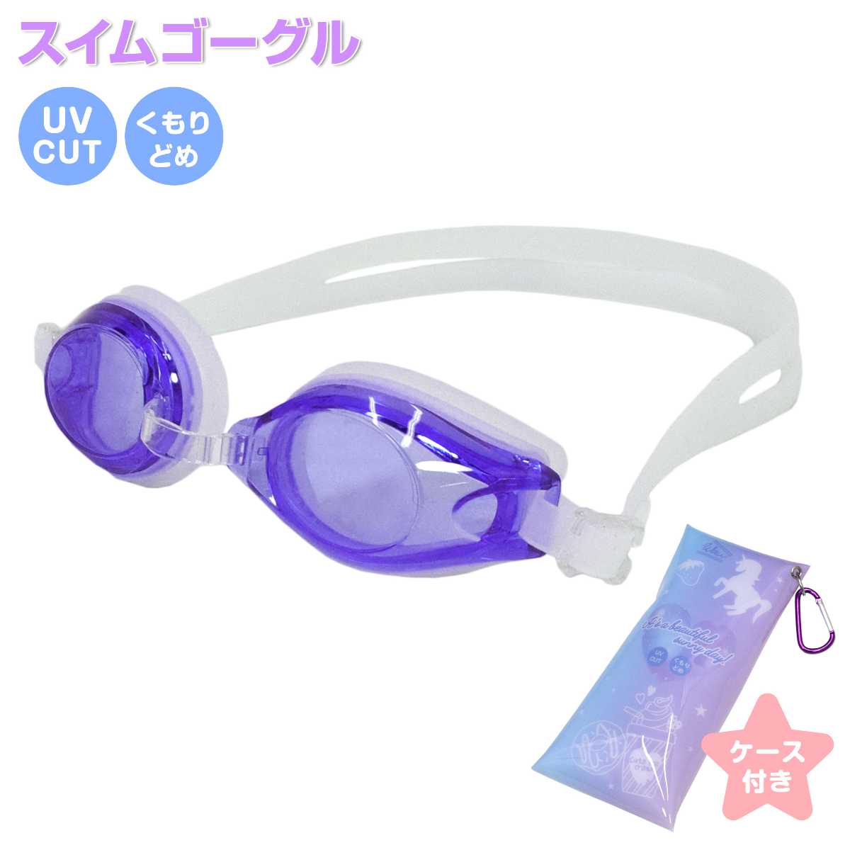 ☆ 商 品 説 明 ☆ ユニコーン カラビナ付き ソフトケース入り スイムゴーグル 。 フェイスパットとストラップは シリコンゴムであたりがソフト。UVカット・曇り留め機能付き。ストラップ・鼻ベルト調節可能。ソフトケース はスナップボタンをはずすと大きく開くので出し入れもらくらく。カラビナ付きで持ち運びにも便利です。