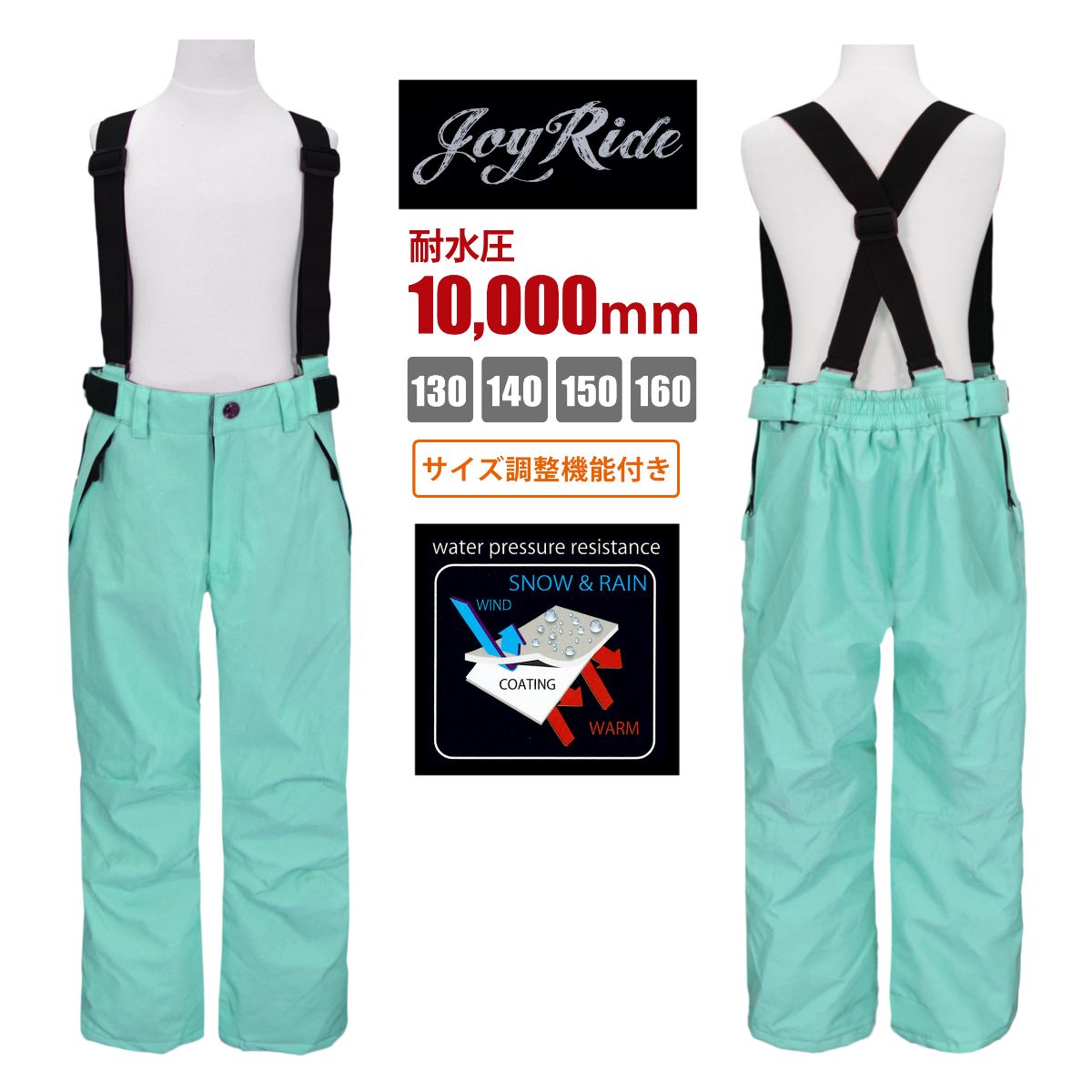 ☆ 商 品 説 明 ☆ JOYRIDE ジョイライド サイズ調節可能 耐水圧10000mm スキーパンツ 。 はっ水加工 耐水圧コーティングの サロペットパンツ です。防水 防風性を発揮し雪・雨・風の侵入を防ぎます。サスペンダー はマジックテープで取り外し可能。ウエストはサイドファスナーを開くと広がりゆったり履けます。ファスナー付き ポケット 2つ。スノーガード エッジガード あり。