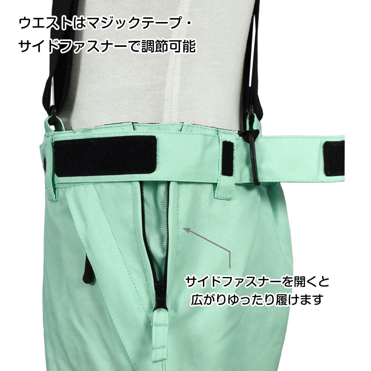 ☆ 商 品 説 明 ☆ JOYRIDE ジョイライド サイズ調節可能 耐水圧10000mm スキーパンツ 。 はっ水加工 耐水圧コーティングの サロペットパンツ です。 防水 防風性を発揮し雪、雨、風の侵入を防ぎます。ヒップ部分は生地裏のシームテープ加工によりお尻の縫い目から水を通さない仕様になっています。サスペンダー はマジックテープで取り外し可能。ウエストはサイドファスナーを開くと広がりゆったり履けます。ファスナー付きポケット2つ。スノーガード エッジガード あり。