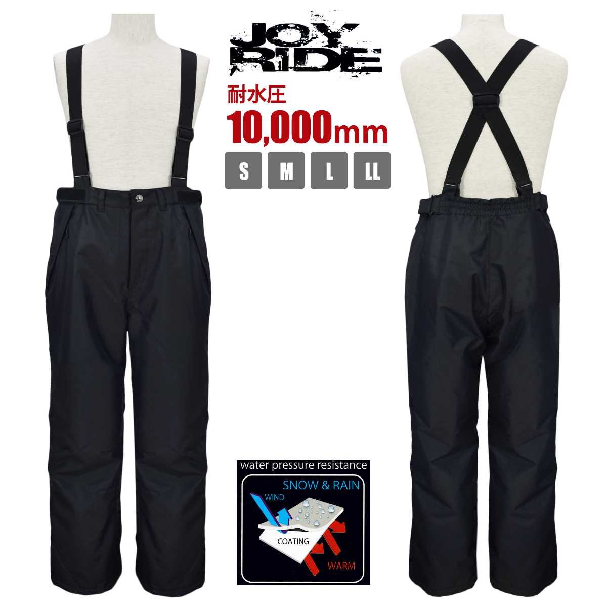 ☆ 商 品 説 明 ☆ JOYRIDE ジョイライド 耐水圧10000mm スキーパンツ 。 はっ水加工 耐水圧コーティング の サロペットパンツ です。防水 防風性を発揮し雪 雨 風の侵入を防ぎます。サスペンダー はマジックテープで取り外し可能。ウエストはサイドファスナーを開くと広がりゆったり履けます。ファスナー付き ポケット 2つ。スノーガード エッジガード あり。