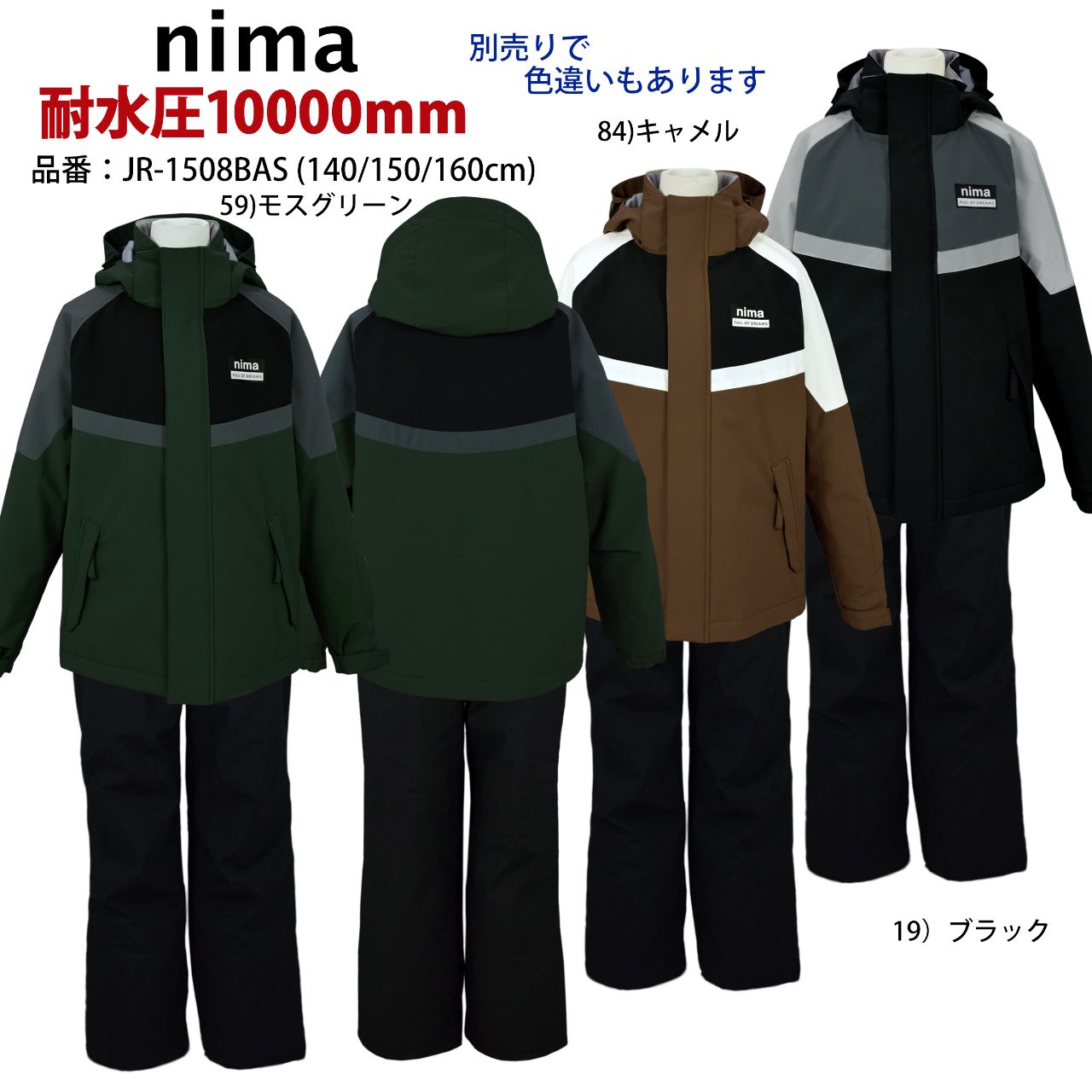 ☆ 商 品 説 明 ☆ WINDEX nima ニーマ 耐水圧10000mm サイズ調整可能 スキーウェア。 切替入り スノーウエア 上下セットです。 【ジャケット】 首まわりは裏トリコット起毛。袖口は一部ゴム、マジックテープ留め。ファスナーガード あり。フード は取り外し可能(マジックテープ)。前面にファスナー付き ポケット が2つ。左側に内ポケット1つ。左袖にパスケース あり(収納可能)。裾はドローコード付き。襟元にネームタグ付き。 【パンツ】 雪が入りにくい サロペットタイプ 。サスペンダー は取り外し不可。ウェストは一部ゴム・サイドマジックテープ。フロントはスナップボタン・ファスナー。スノーガード あり、エッジカード あり。ウエスト裏にネームタグ付き。