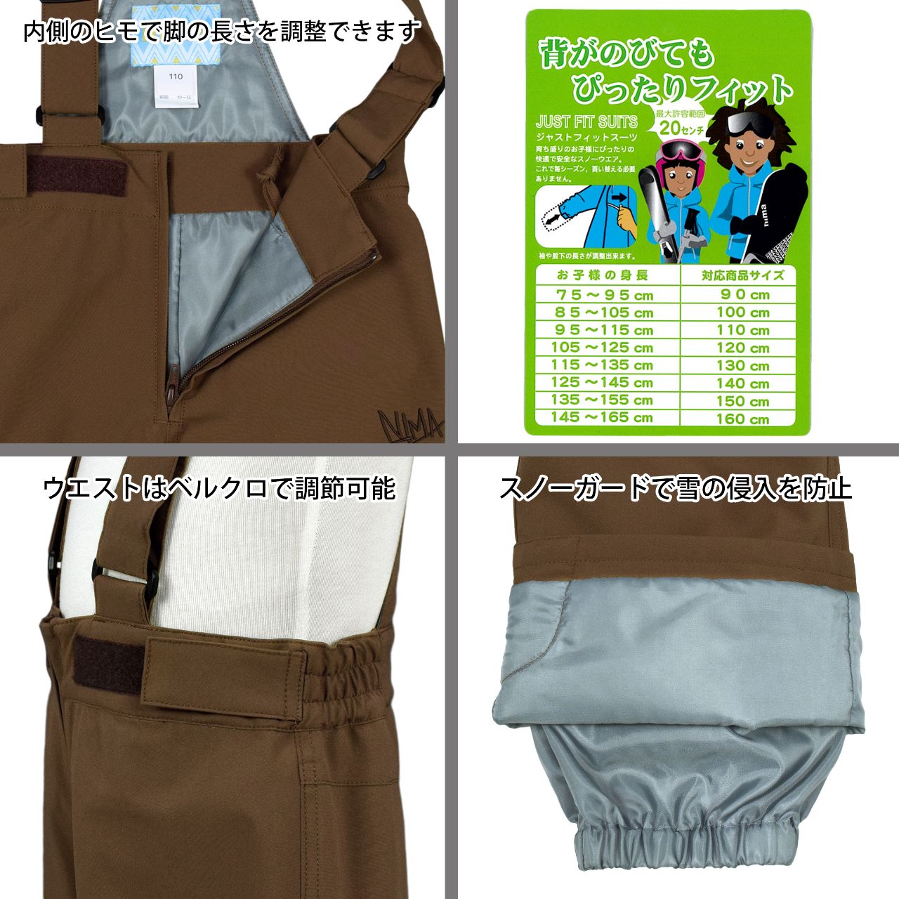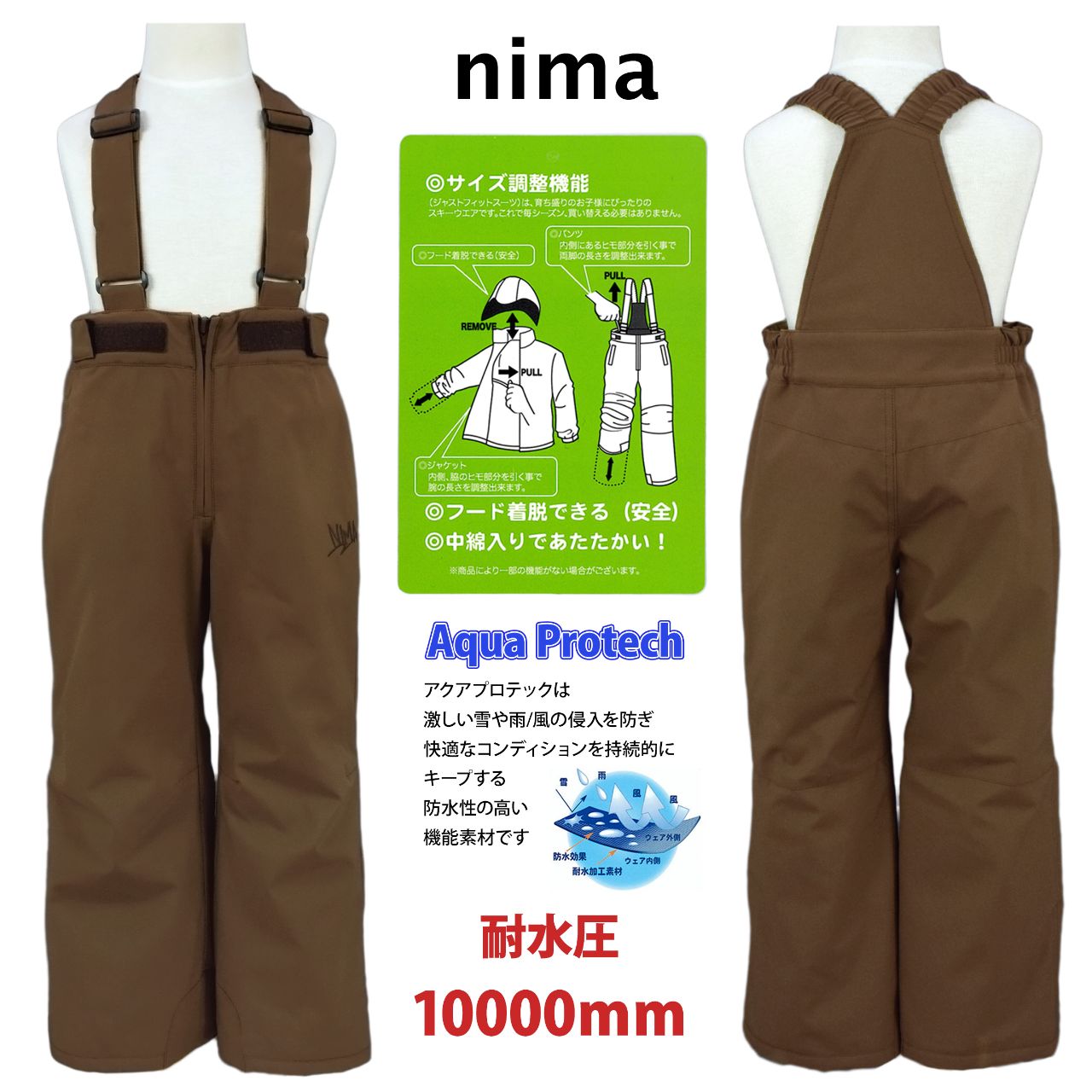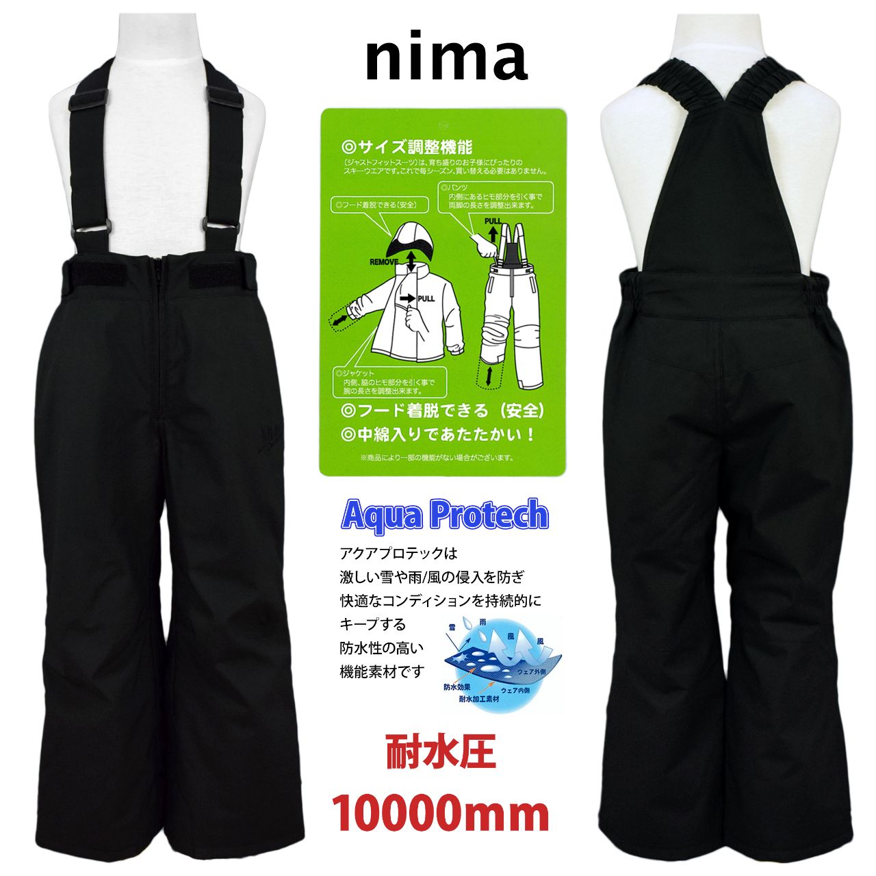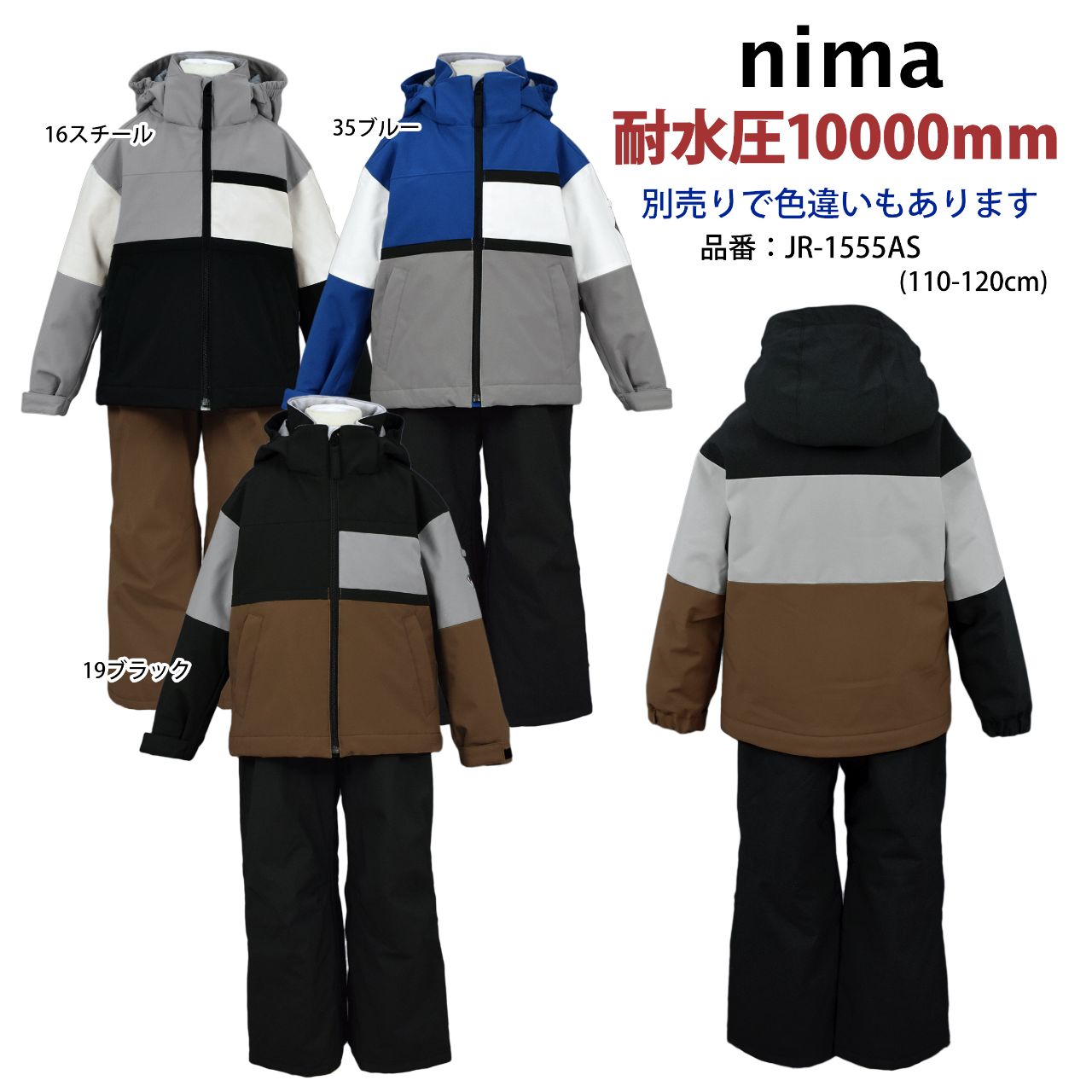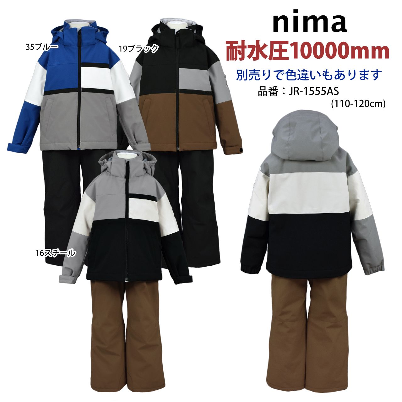 スキーウェア キッズ 男の子 フード取り外し可 サイズ調節可 nima 耐水圧10000mm ○ 商品型番:JR-1555AS