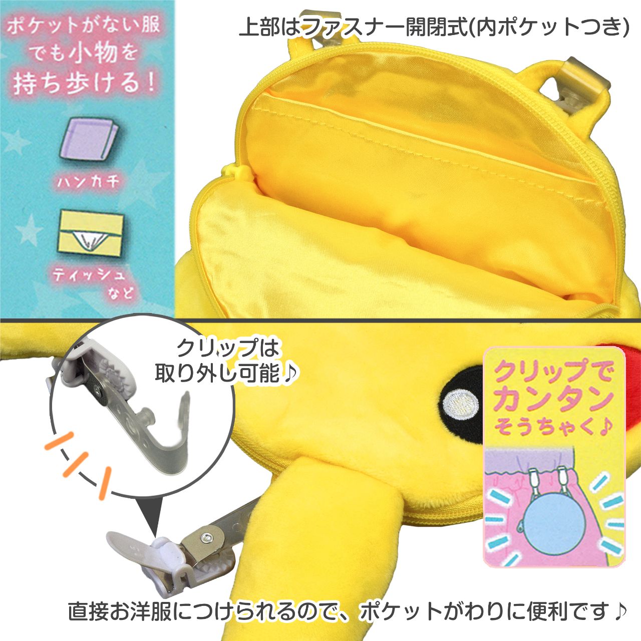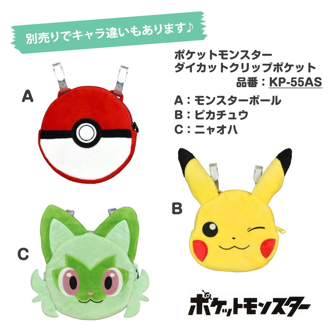 ポケットポーチ ポケモン クリップ ニャオハ キャラクター 入園グッズ ソフトボア ○ 商品型番:KP-55AS
