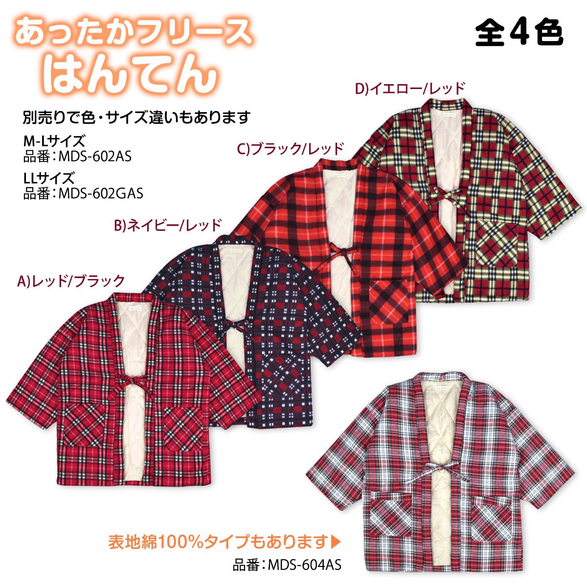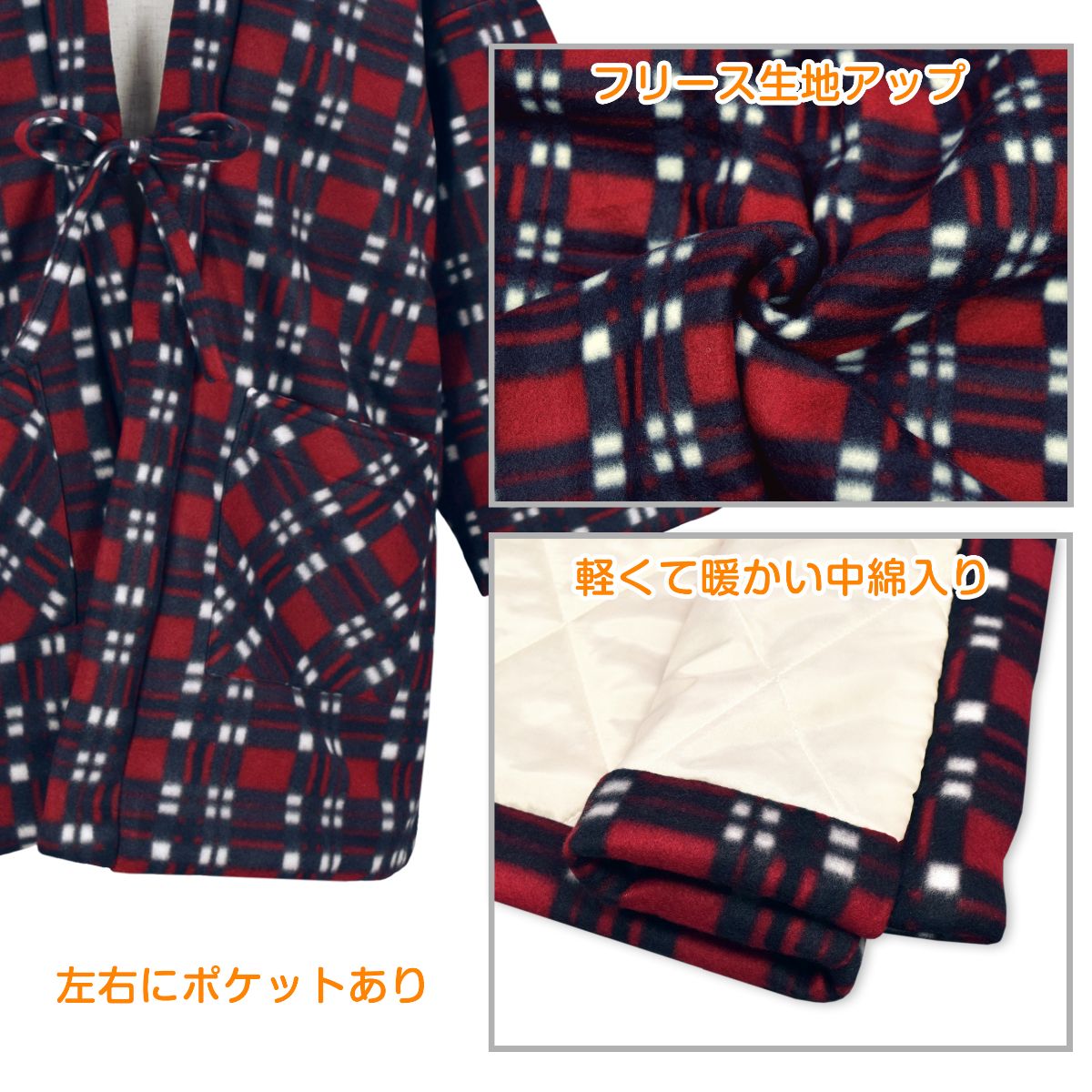 はんてん レディース フリース 綿入り 防寒 ポケット付き おしゃれ ホームウェア ○ 商品型番:MDS-602AS