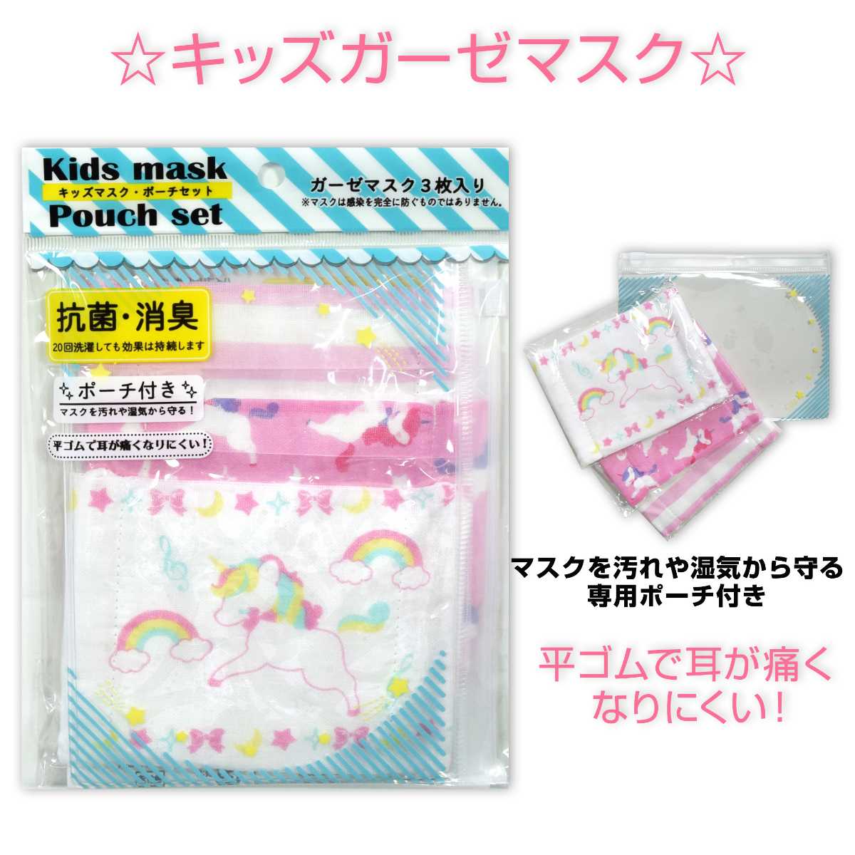 ガーゼマスク 3枚組 キッズ 子供 ポーチ付 ○ 商品型番:MS-2AS