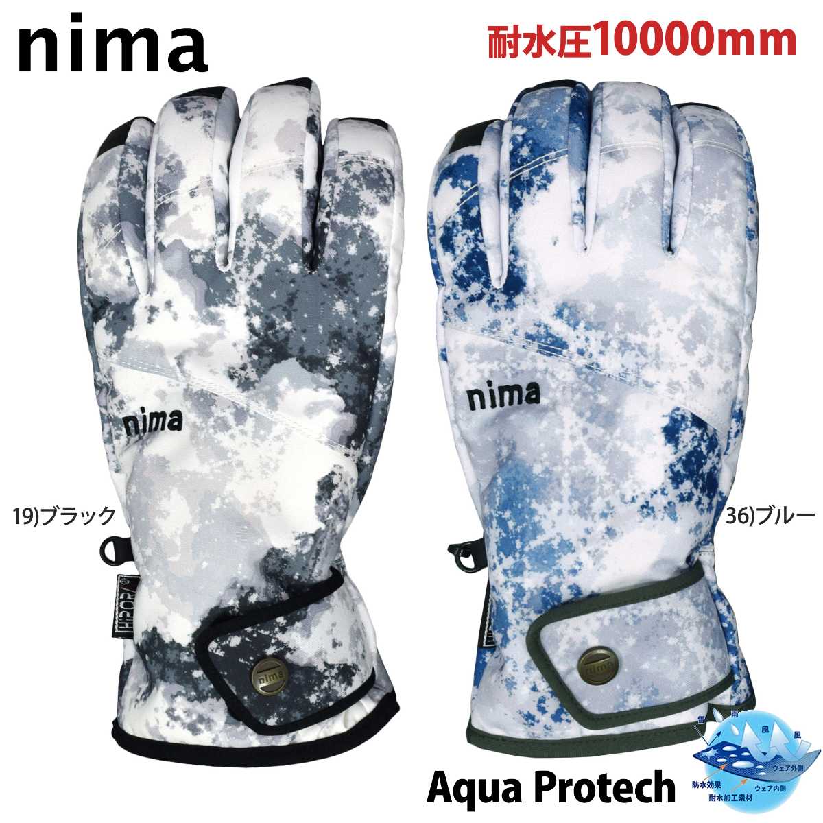 ☆ 商 品 説 明 ☆ nima ニーマ 耐水圧10000mm メンズ スキーグローブ。 かっこいいサイバープリントの中綿入り。 優れた保温性でウインタースポーツに最適なグローブです。 激しい雨、風の侵入を防ぎ快適なコンディションを持続的に キープする防水性の高い機能素材(アクアプロテック)を使用。 指の付け根部分は可能性を高めるオペロンゴム採用。
