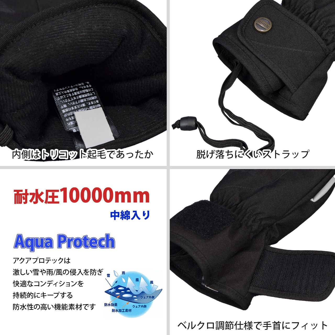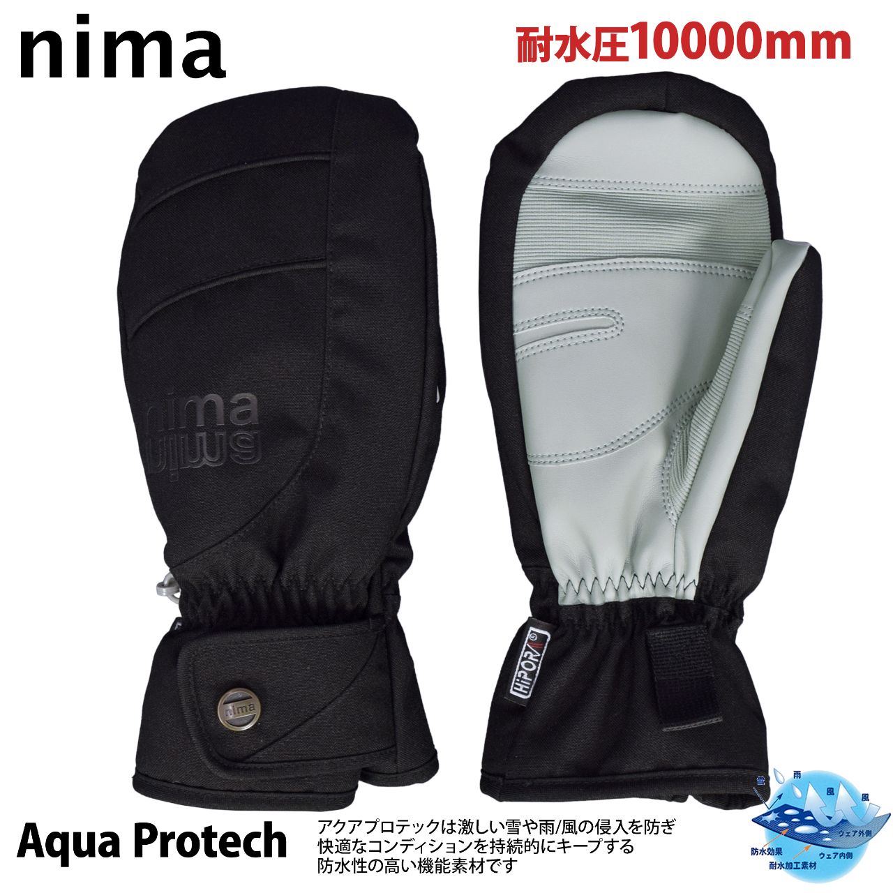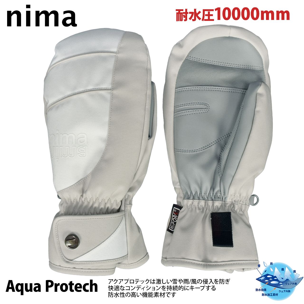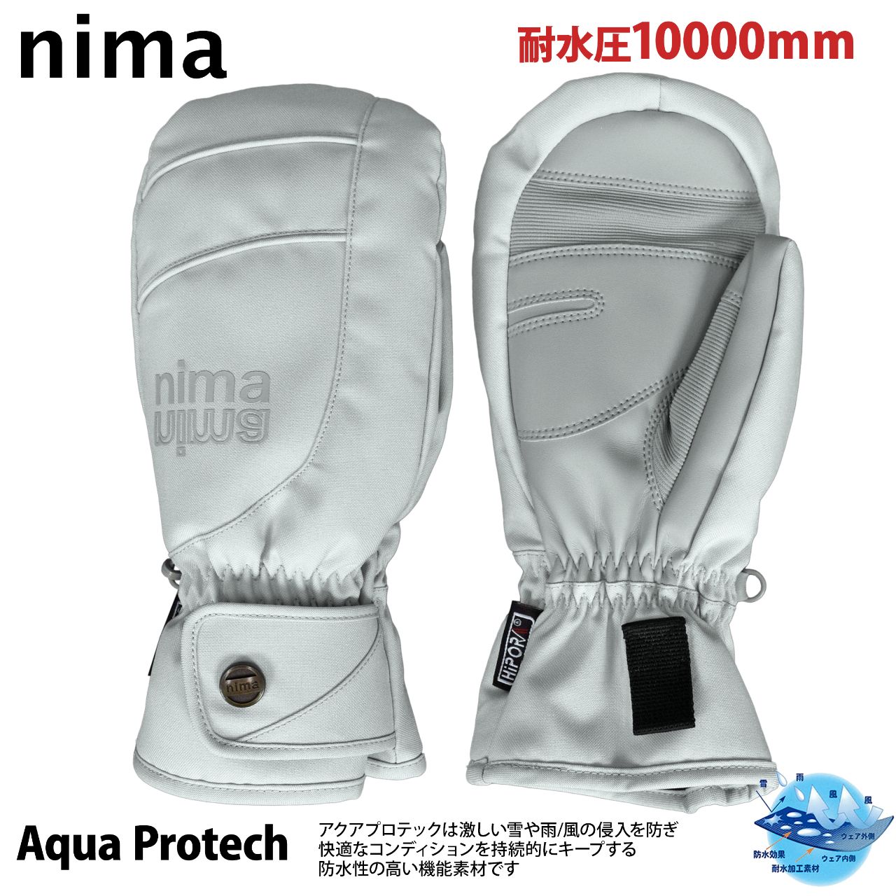 スノー ミトン グローブ レディース WINDEX nima 耐水圧10000mm 内側五指 防寒 ○ 商品型番:NG-706AS