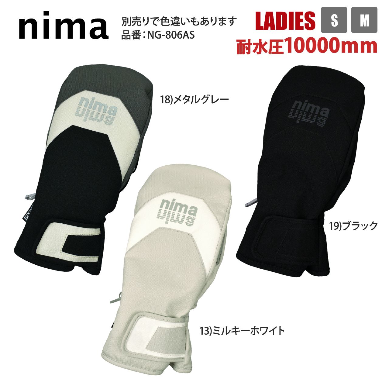 スキー グローブ ミトン レディース nima 高機能素材 耐水圧10000mm 内側五指 ○ 商品型番:NG-806AS