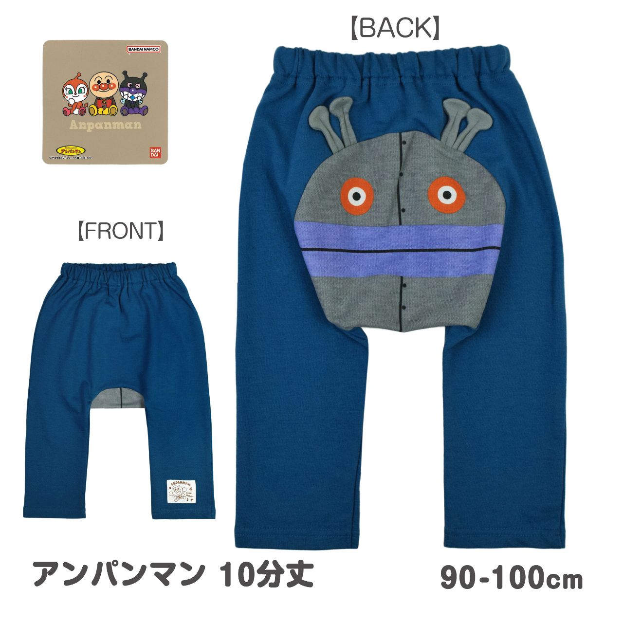 ☆ 商 品 説 明 ☆ それいけアンパンマン ミニ裏毛 10分丈 モンキーパンツ 。 お尻にはだだんだん2号の大きなお顔が付いた 後ろ姿がとってもかわいい ニットパンツです オムツのお尻もすっぽり包み込んでくれます。前裾には アンパンマンのアップリケ付き。ウエストはゴム、ゴム交換口あり、お名前タグ付き。