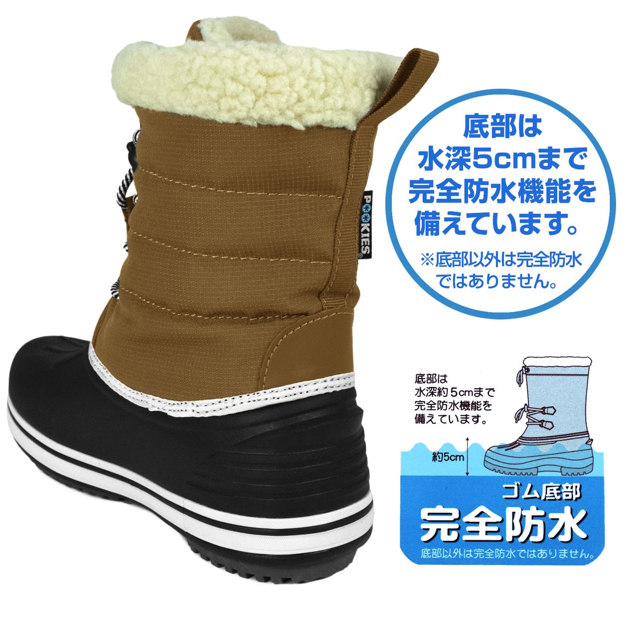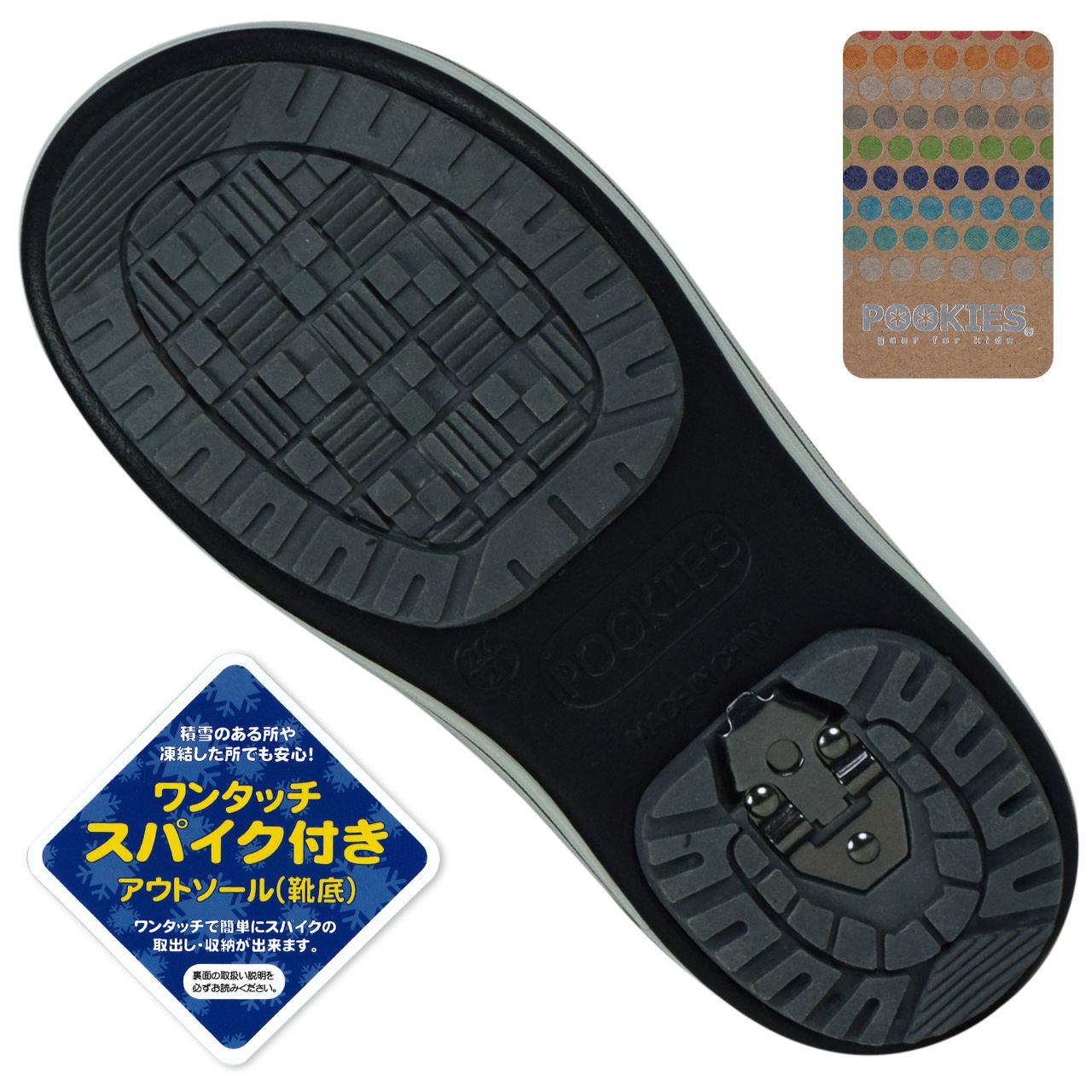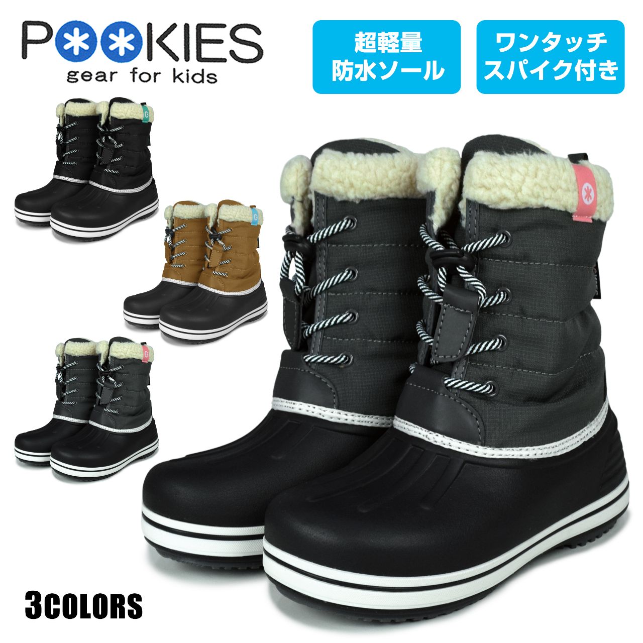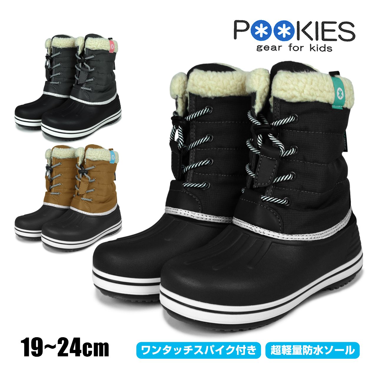 ☆ 商 品 説 明 ☆ POOKIES プーキーズ 超軽量 収納スパイク付き スノーブーツ 。 ソール部分には水深5cm程度までの完全防水機能を備えた超軽量なEVAソールを使用。防滑 耐摩耗 性能向上に合成ゴムを貼りました。靴底には 収納式 スパイク が付いているのでアイスバーンも安心な ウィンターブーツ です。内部は全面ボア貼りで 暖かく ソフト な履き心地です 。フロントのヒモは ドローコードストッパー付き で着脱もらくらく。 ※ 箱は付いていない場合がありますのでご了承願います。