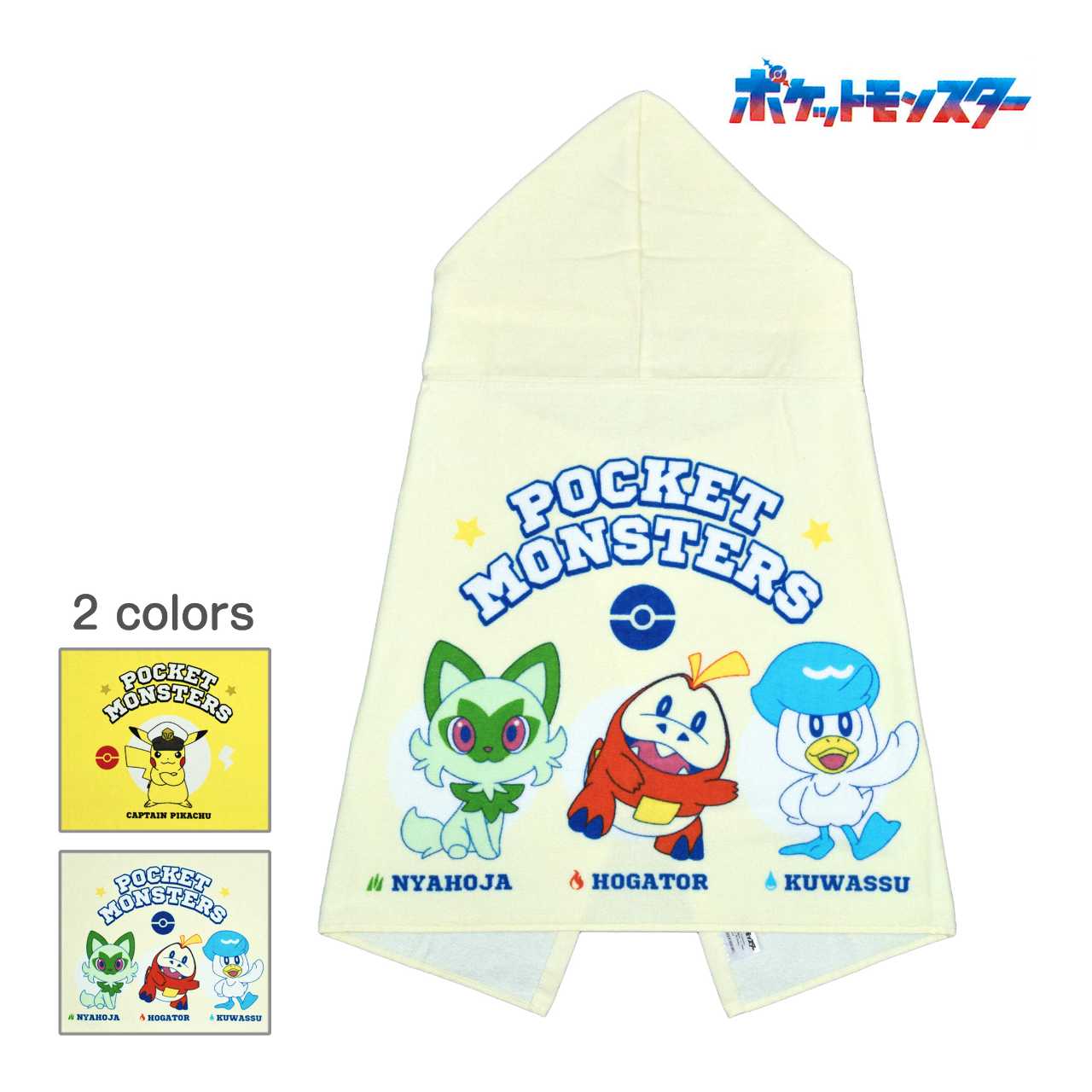 ☆ 商 品 説 明 ☆ ポケットモンスター フード付き コンパクトバスタオル 。 人気の ニャオハ ホゲータ クワッス プリント入り。スナップボタン付きでズレにくく、使いやすい コンパクトサイズ。フード付きタオル なので プール お風呂上り はもちろん レジャーでの日焼け対策などサッと羽織れマルチに活躍します。吸水性のあるコットン100%のタオル地。フード取り外し不可。前スナップ1つ。