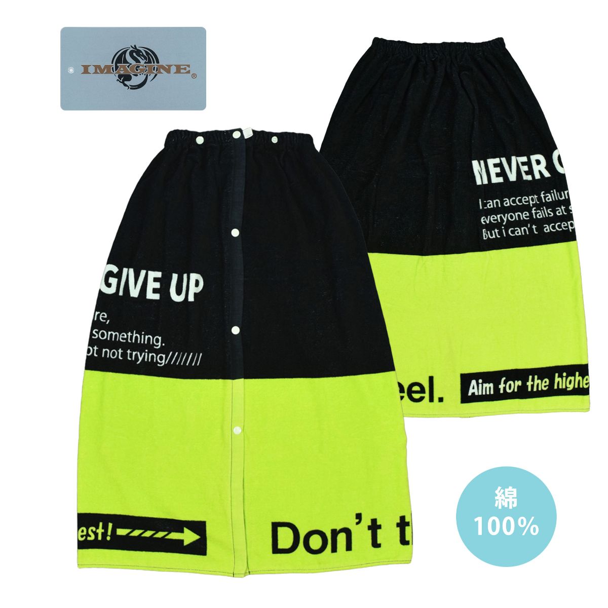 ☆ 商 品 説 明 ☆ 配色切替 ロゴプリント入り ラップタオル 。 バイカラーにプリントが入った かっこいい 巻きタオル です。前立てはスナップボタン留めだから着替えの時にも便利です。もちろんバスタオルとしてもお使いいただけます。上部はゴム入り、2段階調節できるスナップボタン留め。ボタンが外しやすいつまみ付き。冷え対策 日焼け防止 プール 海水浴 など水辺の 必需品。