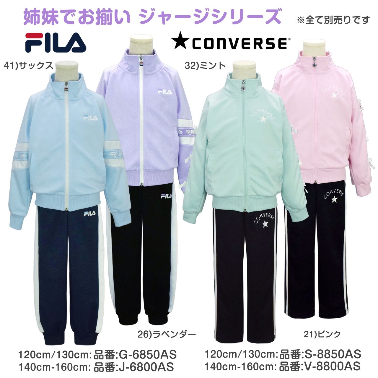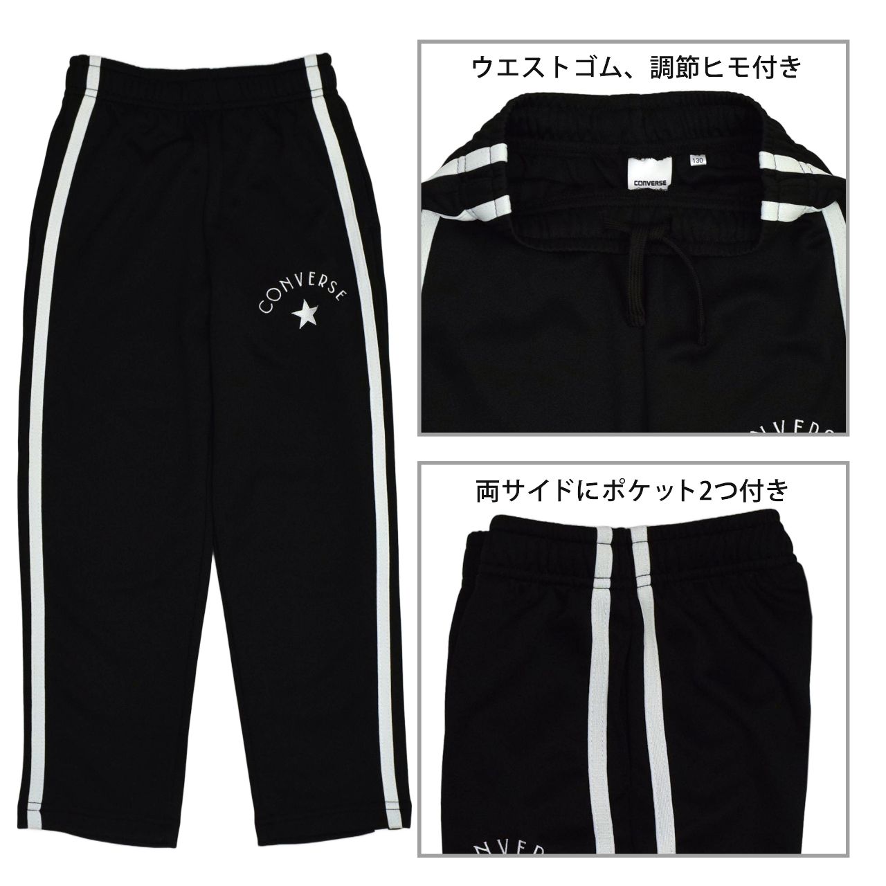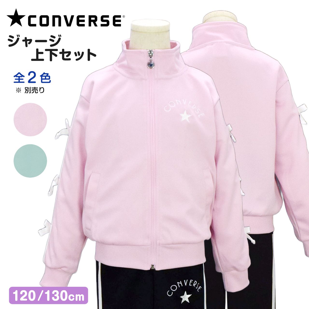☆ 商 品 説 明 ☆ CONVERSE コンバース トレーニングウェア ジャージ 上下セット 。 胸にはコンバースのマークとロゴ刺繍入り。袖は2本ラインにリボンが付いたガーリーでかわいらしいセットアップジャージです。 パンツは、腰部分に刺繍入り。サイドは2本ライン。ウエストはゴム、ひも付き。トップス、ボトムスに各2つポケットあり。