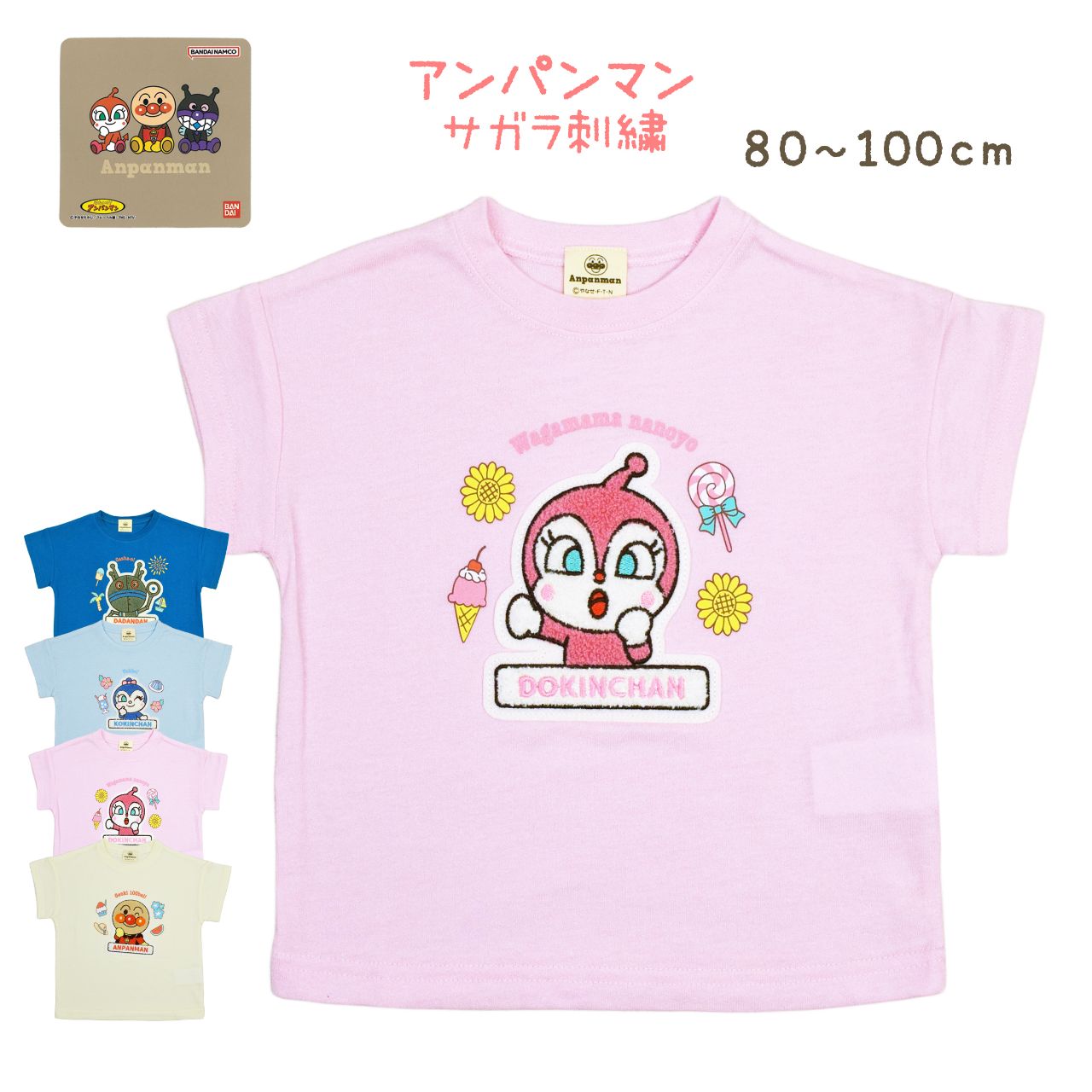 ☆ 商 品 説 明 ☆ それいけアンパンマン さがら刺繍 半袖Tシャツ 。 ドキンちゃんのサガラ刺繍のふんわり感に夏のアイテムがプリントされたかわいい半袖カットソーです。 シンプルなデザインながらも1枚でキュートに着こなせるTシャツです。お名前タグ付き。