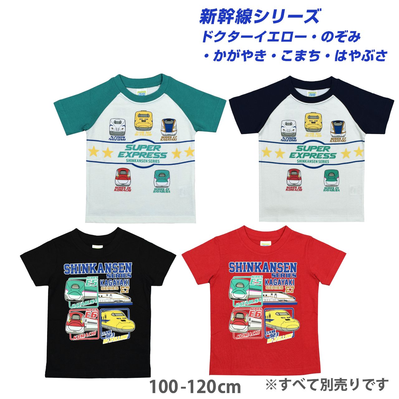半袖Tシャツ 新幹線 のぞみ かがやき こまち はやぶさ ドクターイエロー キッズ ○ 商品型番:SN-4705ABAS