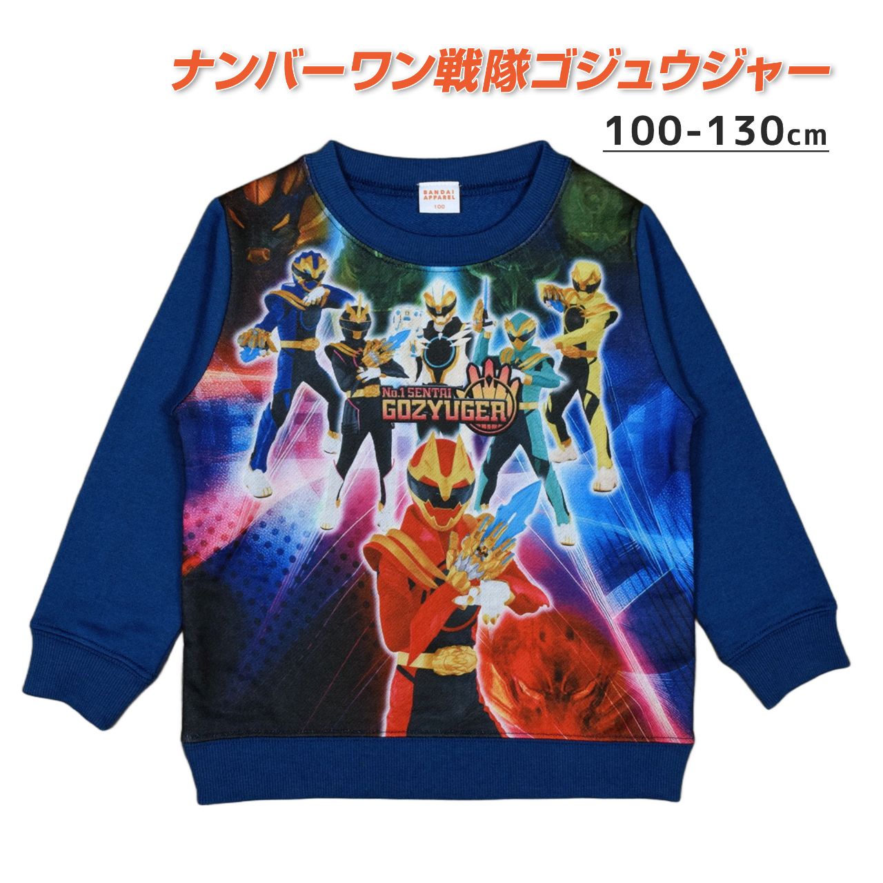 ☆ 商 品 説 明 ☆ ナンバーワン戦隊 ゴジュウジャー 裏毛 長袖トレーナー 。 ゴジュウウルフ ゴジュウレオン ゴジュウティラノ ゴジュウユニコーン ゴジュウポーラー の迫力ある かっこいい プリント入り スウェットシャツ です。 通園、通学、おでかけ におすすめです。襟、袖口、裾リブ使い。お名前タグ付き。