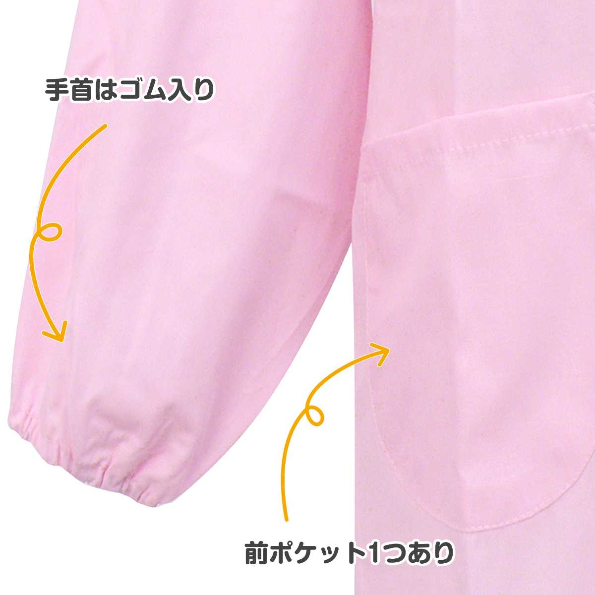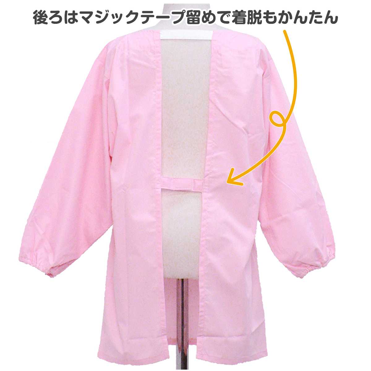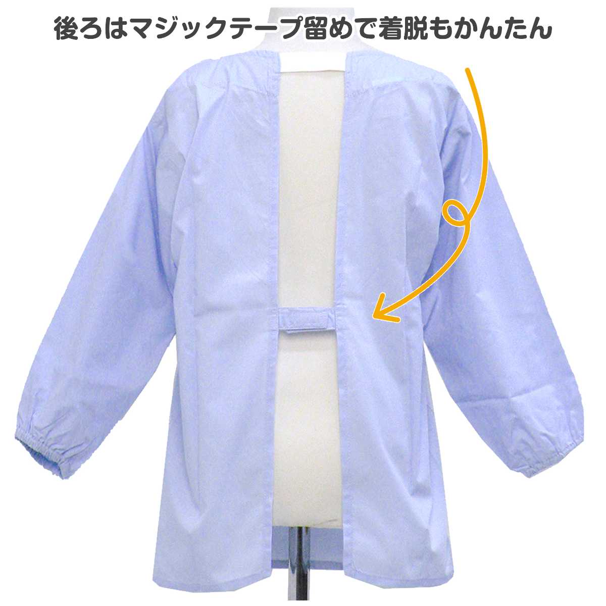 後はマジックテープ留めで着脱もかんたん。手首ゴム入り。首の後ろはゴム使用。ポケット 前1つ。