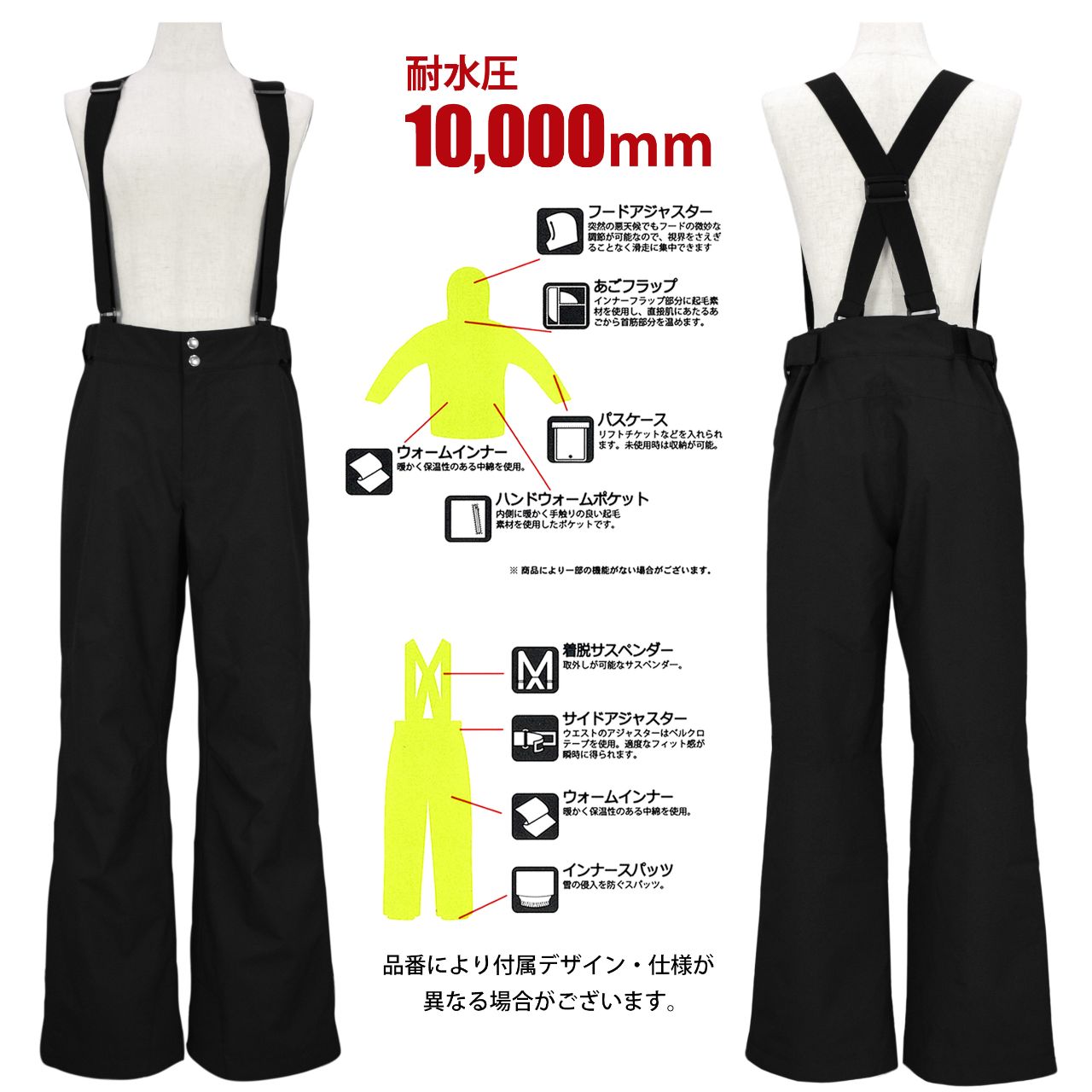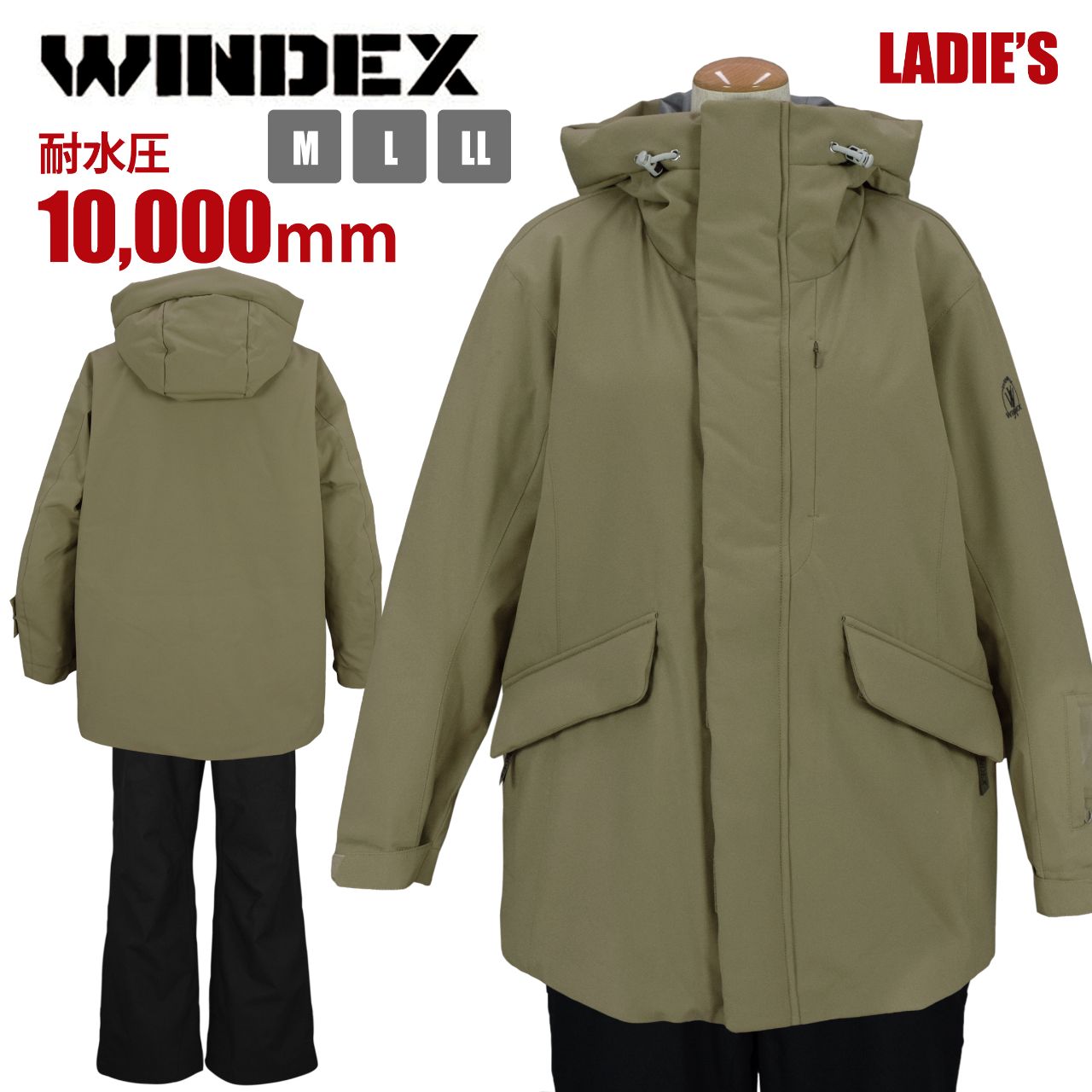 ☆ 商 品 説 明 ☆ WINDEX ウインデックス 耐水圧10000mm レディース スキーウェア 。 中綿ボリューム仕様。 ゆったりシルエットの ウエア上下 セットアップです。激しい雪や雨 風の侵入を防ぎ快適なコンディションを持続敵にキープする 防水性 の高い高機能素材です。 【ジャケット】 ファスナーガード あり。袖口はマジックテープ留め。フード は取り外し不可。ドローコード付き。ポケット は前に3つ、内2つ ハンドウォーム仕様。内側 ファスナー付き内ポケット1つ。左袖に パスケース あり (収納可能)。裾はドローコード付き。 【パンツ】 サスペンダー は取り外し可(マジックテープ仕様)。ウエストは一部ゴム、マジックテープ留め。フロントはスナップボタンとファスナー。ポケットは前2つ。スノーガード あり。エッジガード あり。