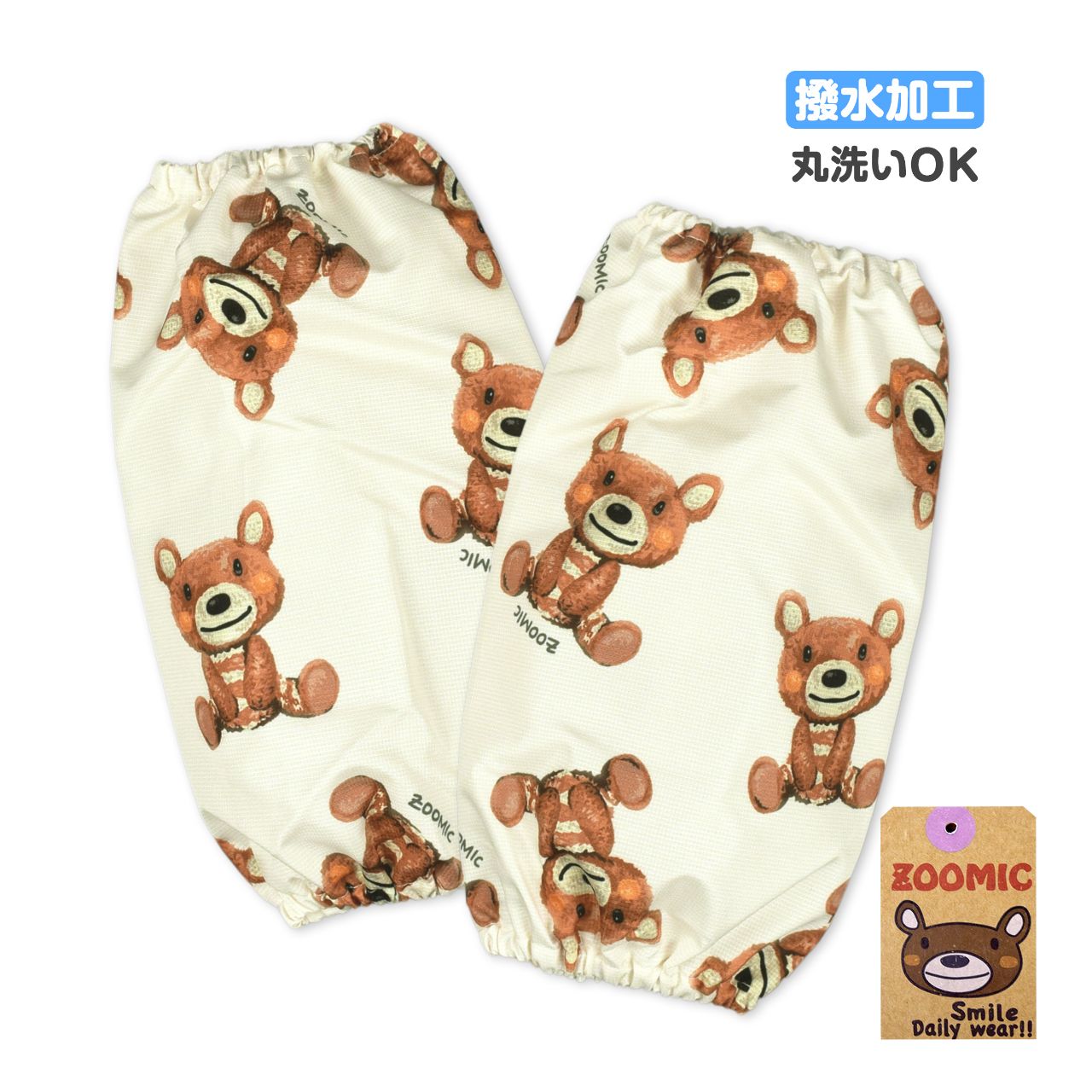 ☆ 商 品 説 明 ☆ ZOOMIC ズーミック ぬいぐるみズークマ はっ水加工 アームカバー。 ぬいぐるみズークマ のかわいいプリント入り。撥水加工 なので水滴から袖口をカバーできます。スモックを着てくれない時でも 腕カバー を付けるだけで袖口の汚れも安心です。丸洗い もOK。