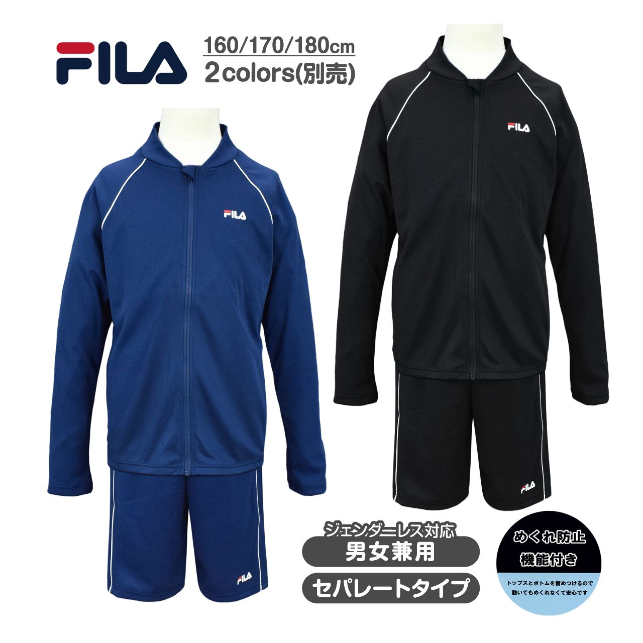 フィットネス水着 レディース セパレート FILA フルジップ スイムウェア めくれ防止