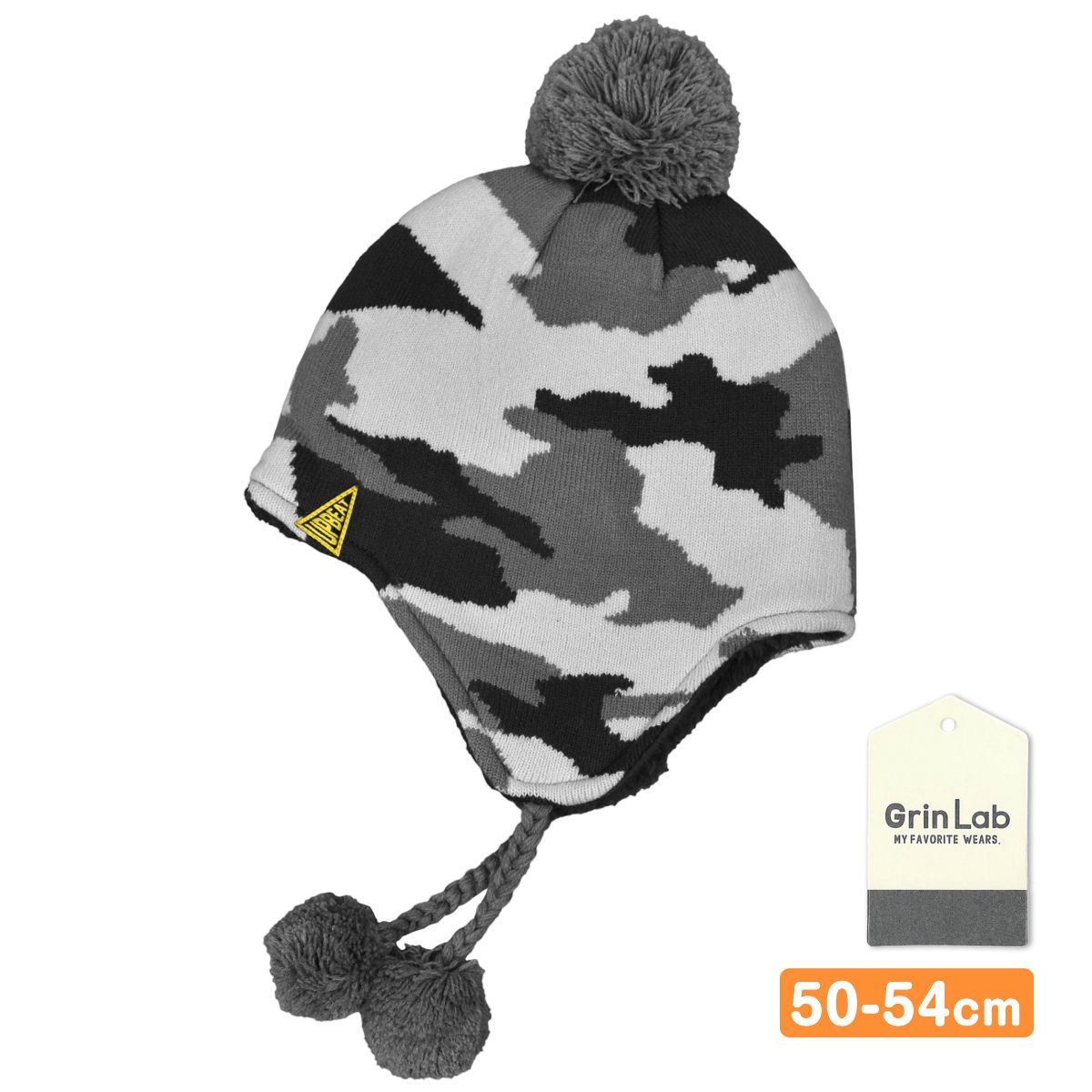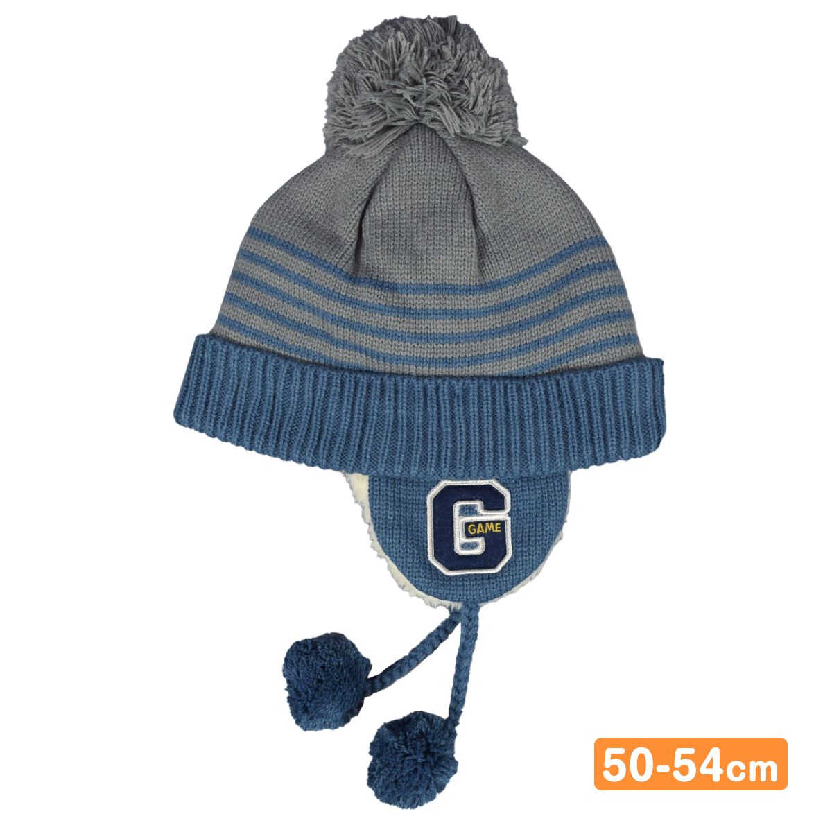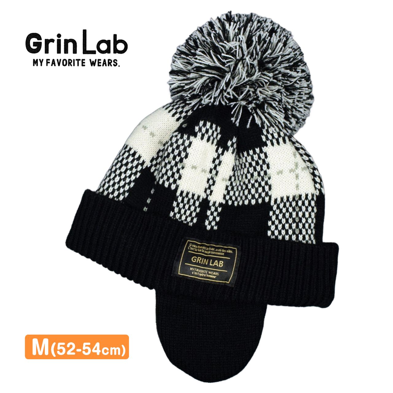 ニットキャップ キッズ 裏ボア 耳当て付き ベビー ボンボン 男の子 Grin Lab