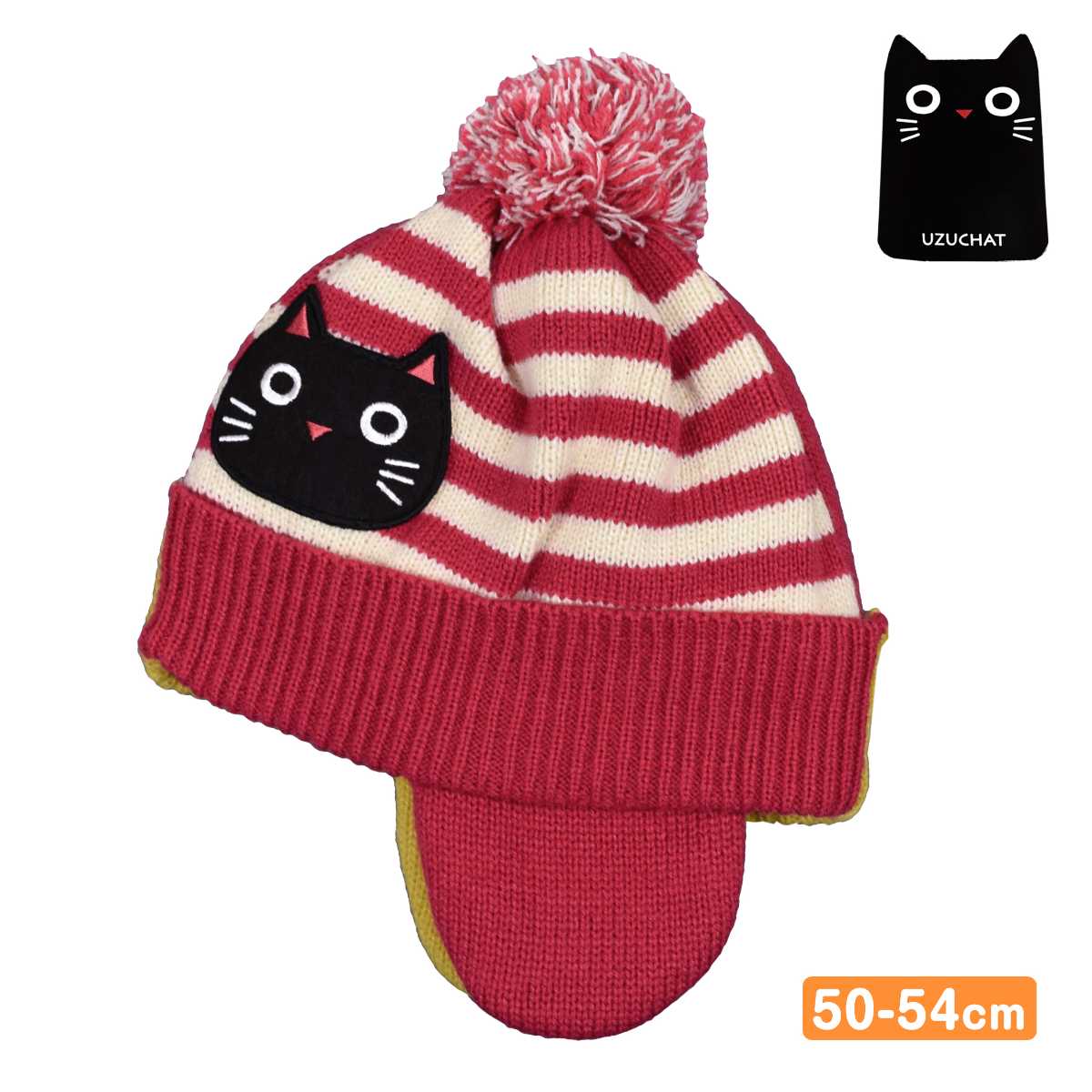 ニットキャップ キッズ 耳当て付き ベビー 子供 猫 女の子 ウズチャット
