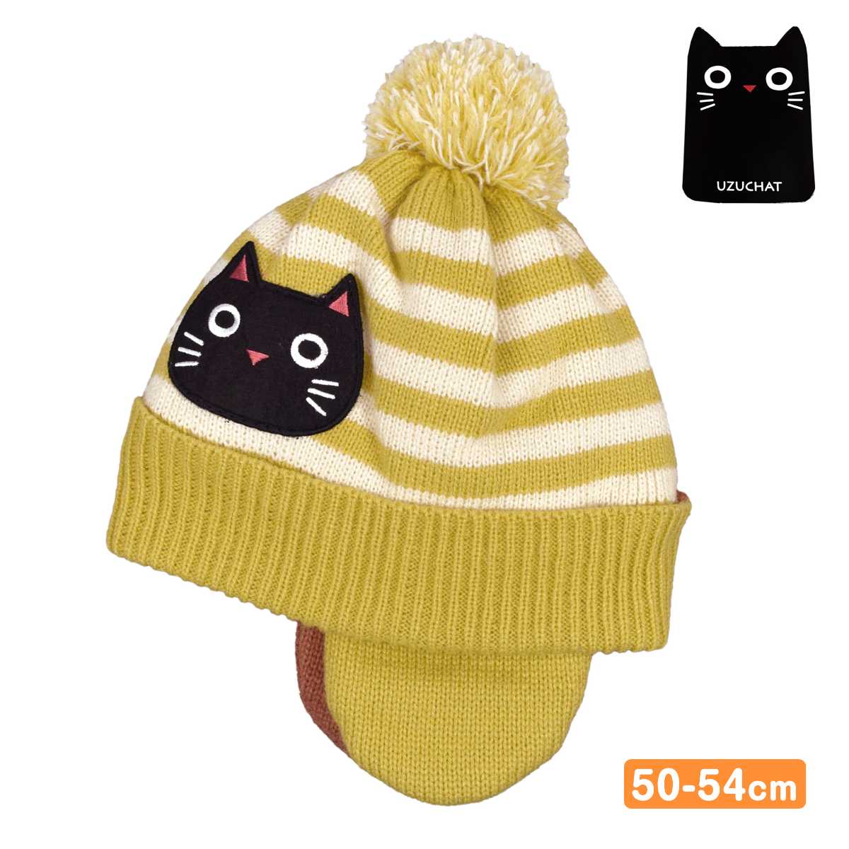 ニット帽 キッズ 耳当て付き 裏ボア 黒猫 ベビー 子供 女の子 UZUCHAT
