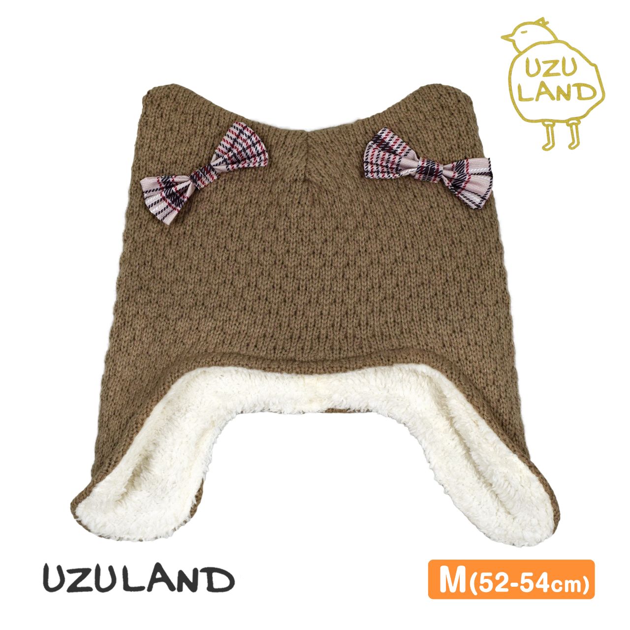 ニットキャップ 女の子 子供 ウズランド 耳当て リボン付き 裏ボア ニット帽
