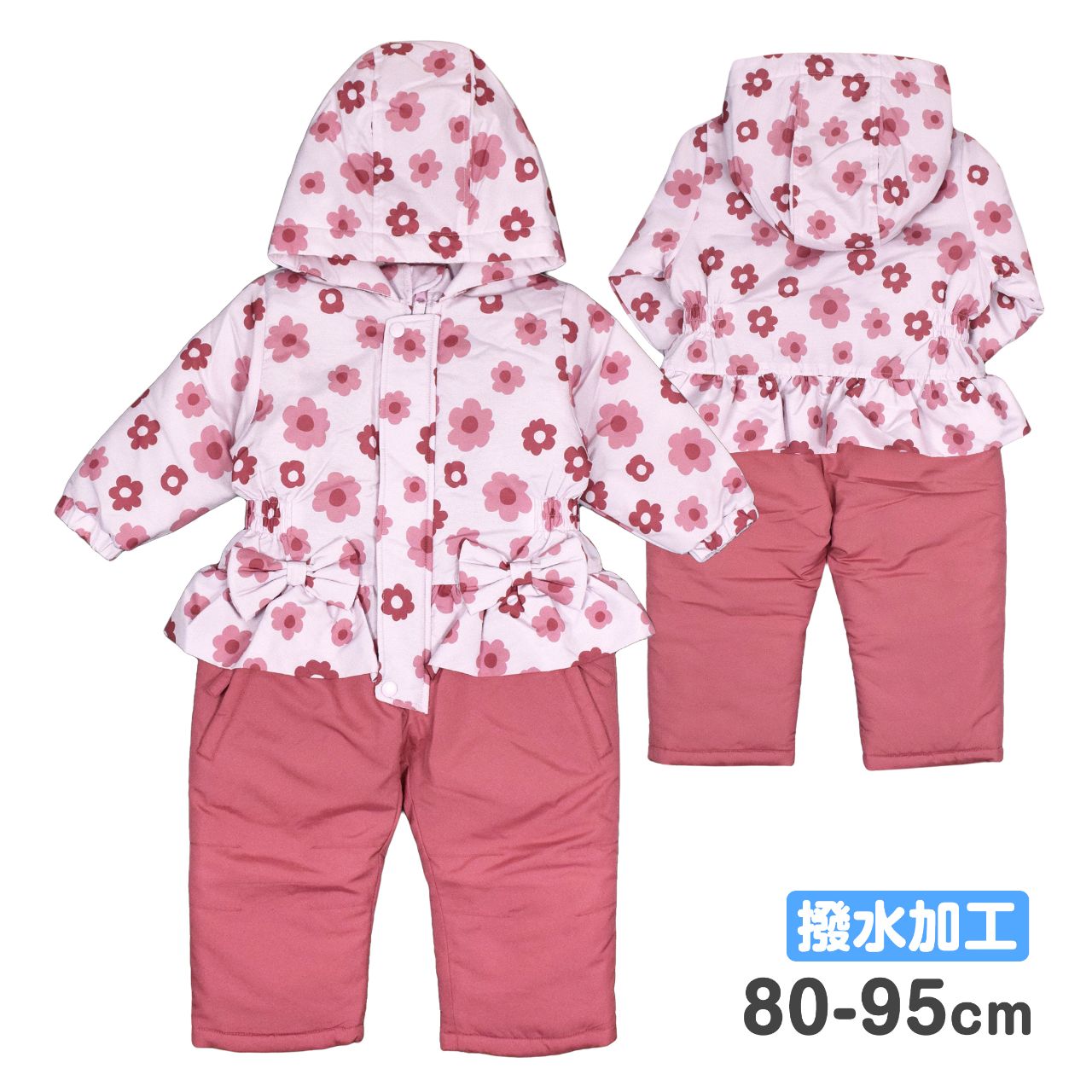 ジャンプスーツ ベビー キッズ 女の子 花柄 撥水 防寒 中綿 カバーオール ピンク