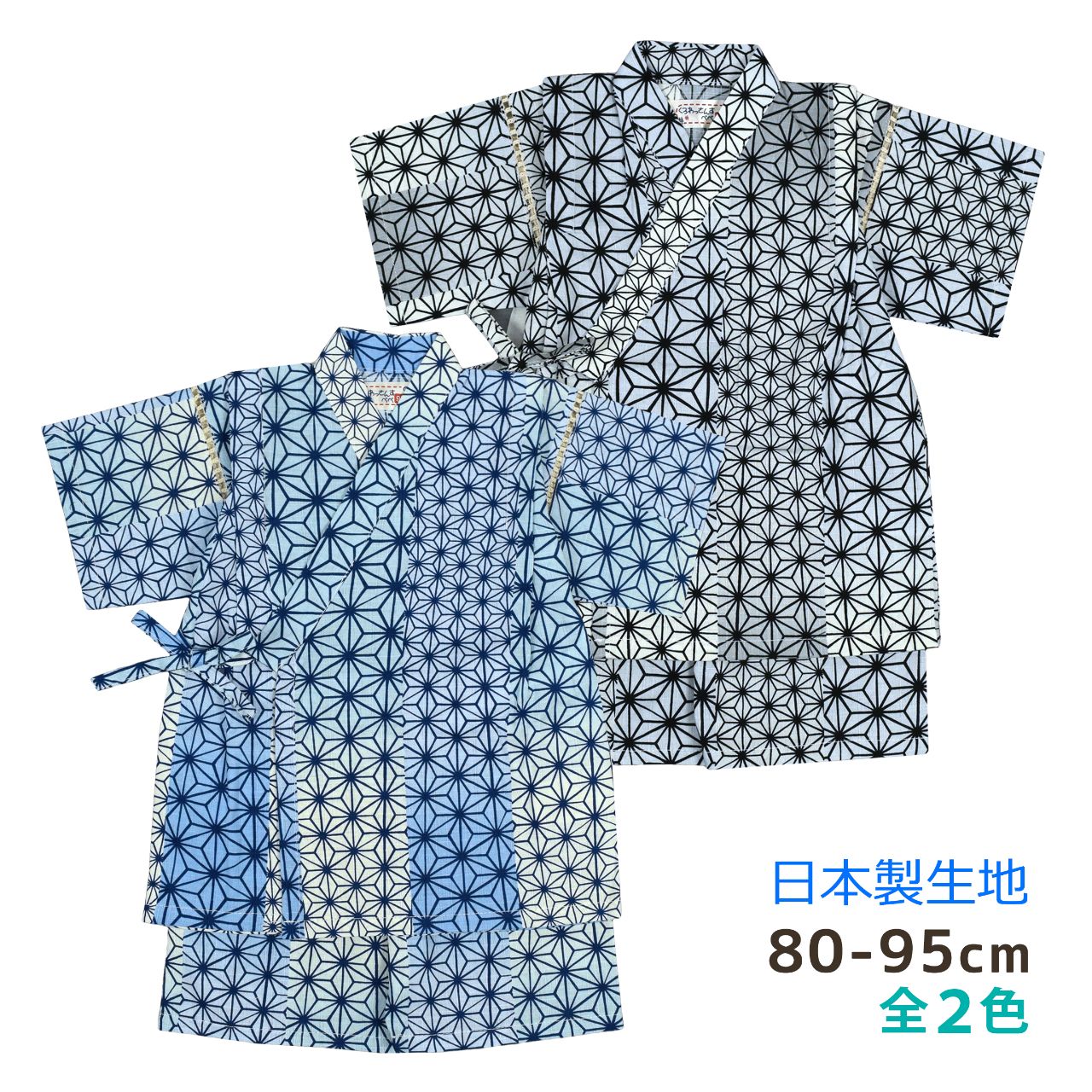 甚平 ベビー キッズ 男の子 子供 日本製生地 麻の葉 グラデーション 上下