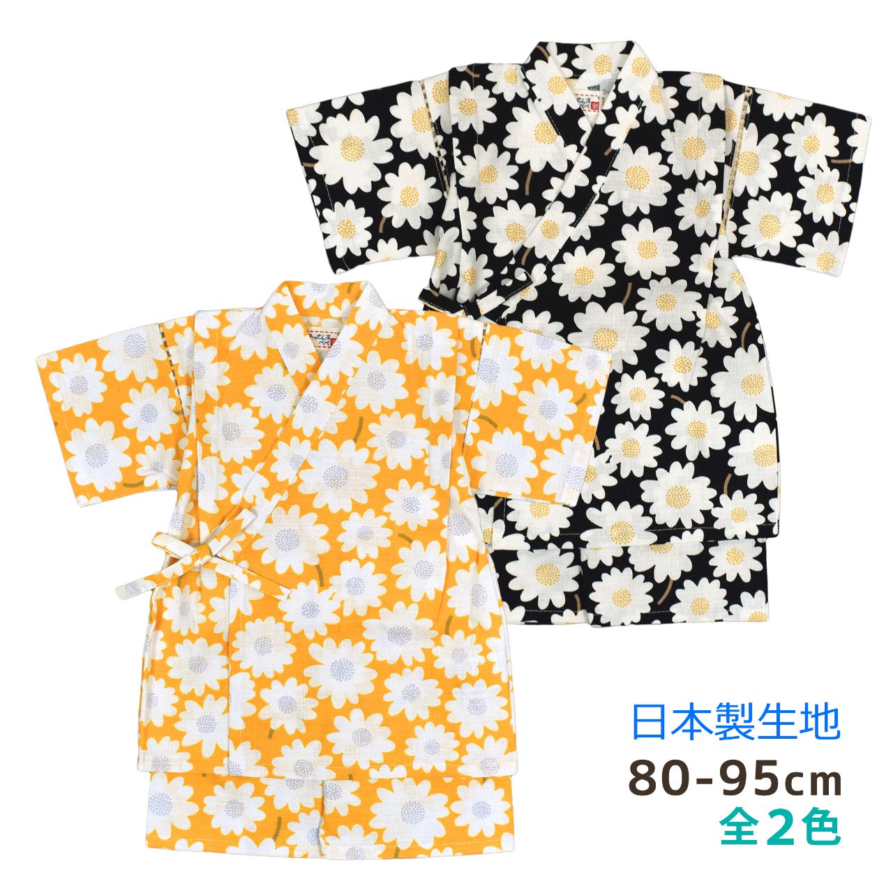 甚平 ベビー キッズ 女の子 子供 日本製生地 ひまわり パンツ上下 綿100%