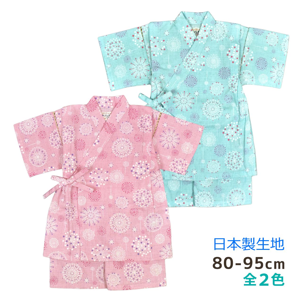 甚平 女の子 ベビー キッズ 子供 パンツ上下 花火 日本製生地 綿100