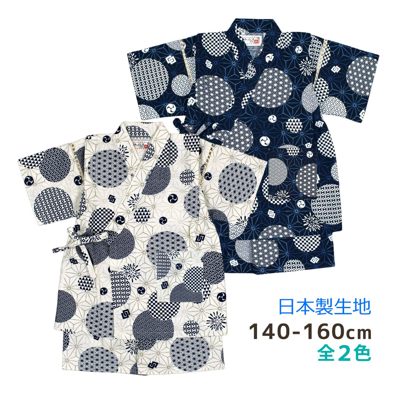 甚平 子供 キッズ 男の子 北欧 水玉 日本製生地 じんべい 上下 セット 綿100%