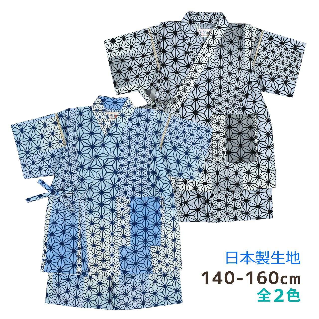 甚平 おしゃれ キッズ ジュニア 男の子 子供 麻柄 日本製 生地 麻柄 綿100%