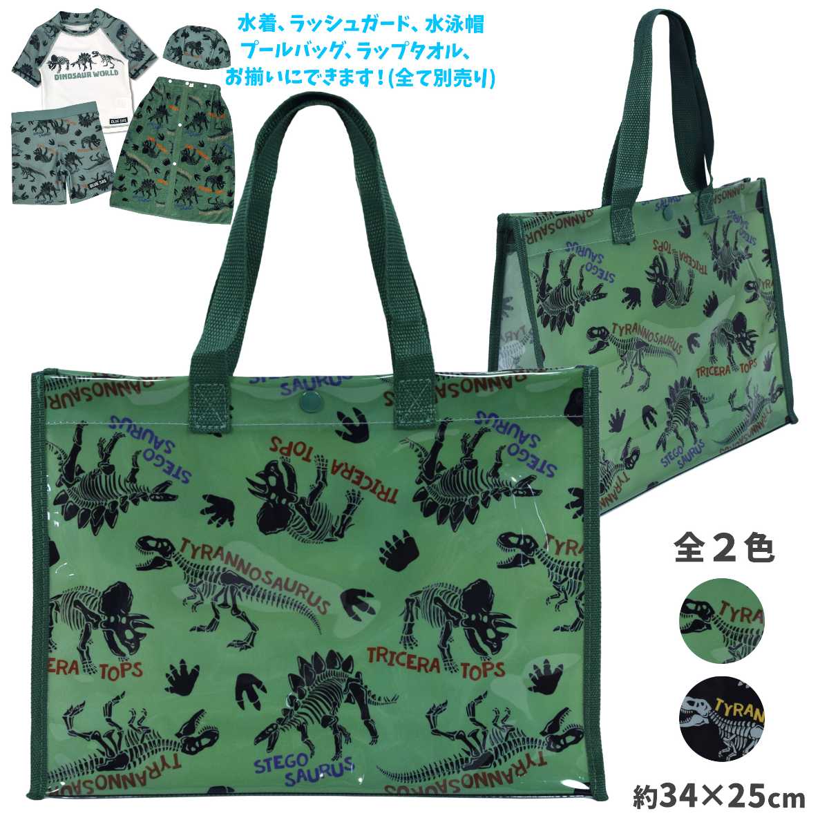 プールバッグ 子供 恐竜柄 ボタン付き