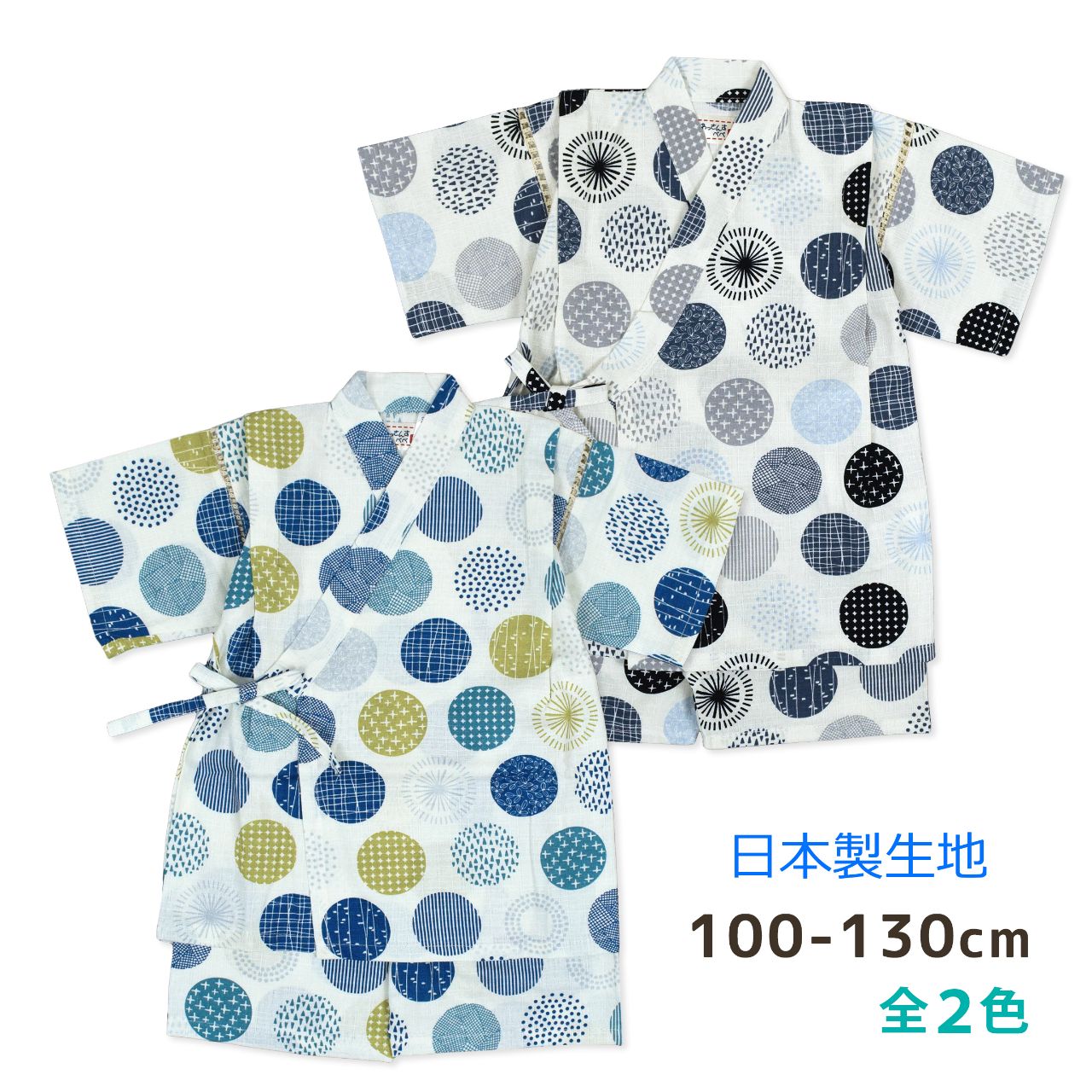 甚平 キッズ 子供 北欧 水玉 日本製生地 男の子 上下 セット 綿100% ドット