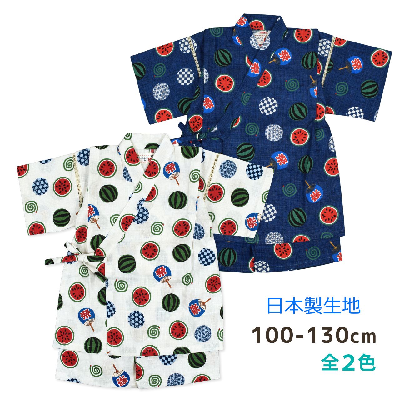 【メール便送料無料甚平 男の子 すいか 可愛い 日本製 生地 おしゃれ 上下 セット 綿100% 綿