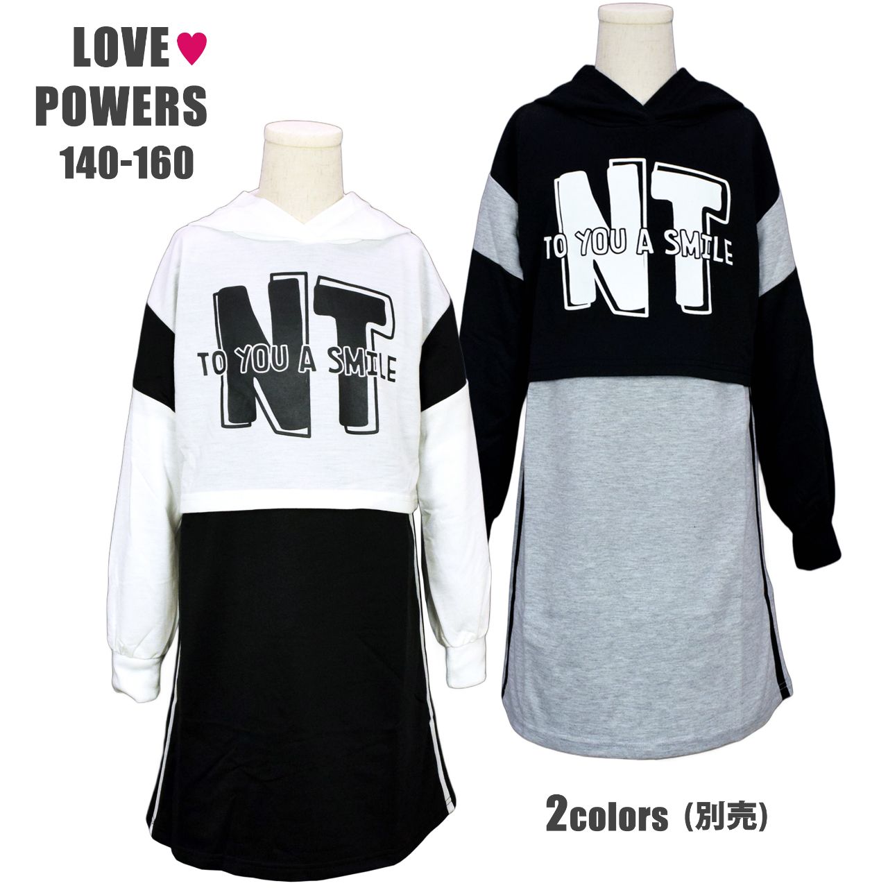 ドッキングワンピース 長袖 ショート丈 ストリート風 カジュアル キッズ ジュニア