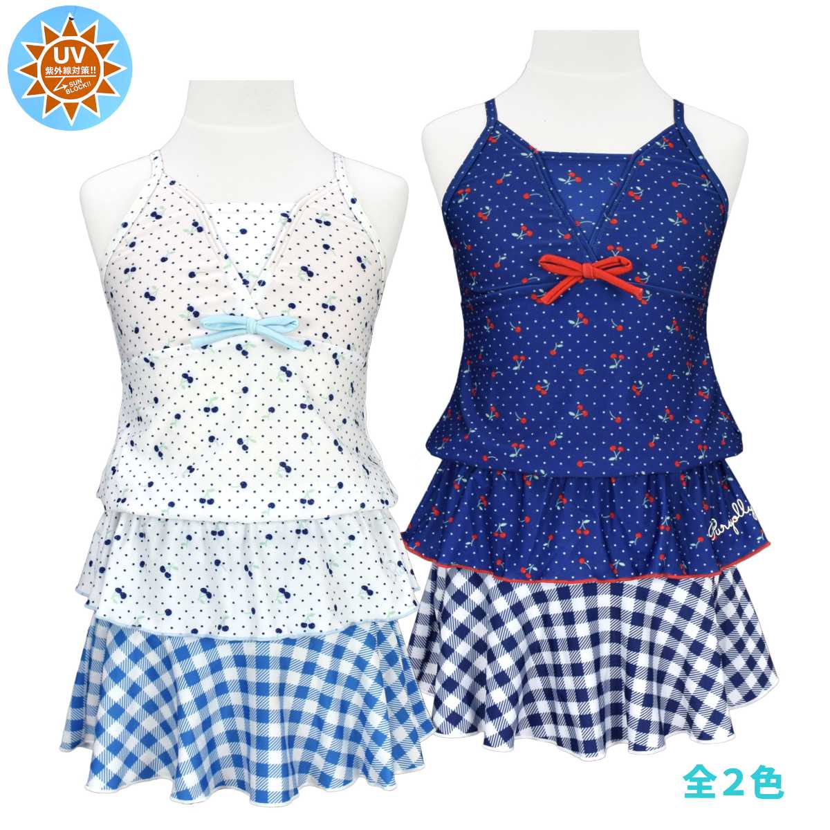タンキニ 水着 2点 セット キッズ ジュニア 子供 女の子 さくらんぼ セパレート水着