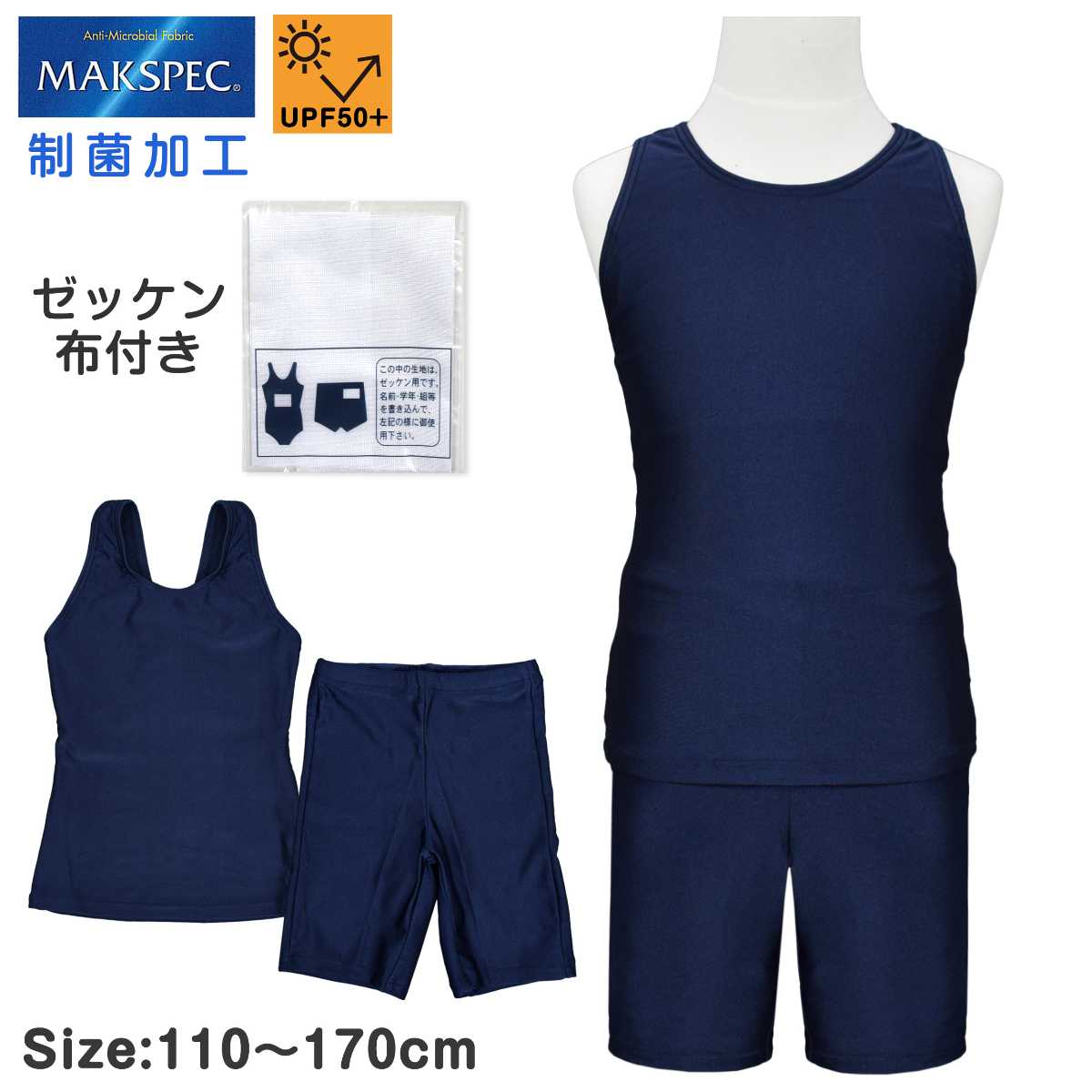 ワンピース水着 ゼッケン付き キッズ 制菌加工 UVカット スクール水着 スパッツ 紺