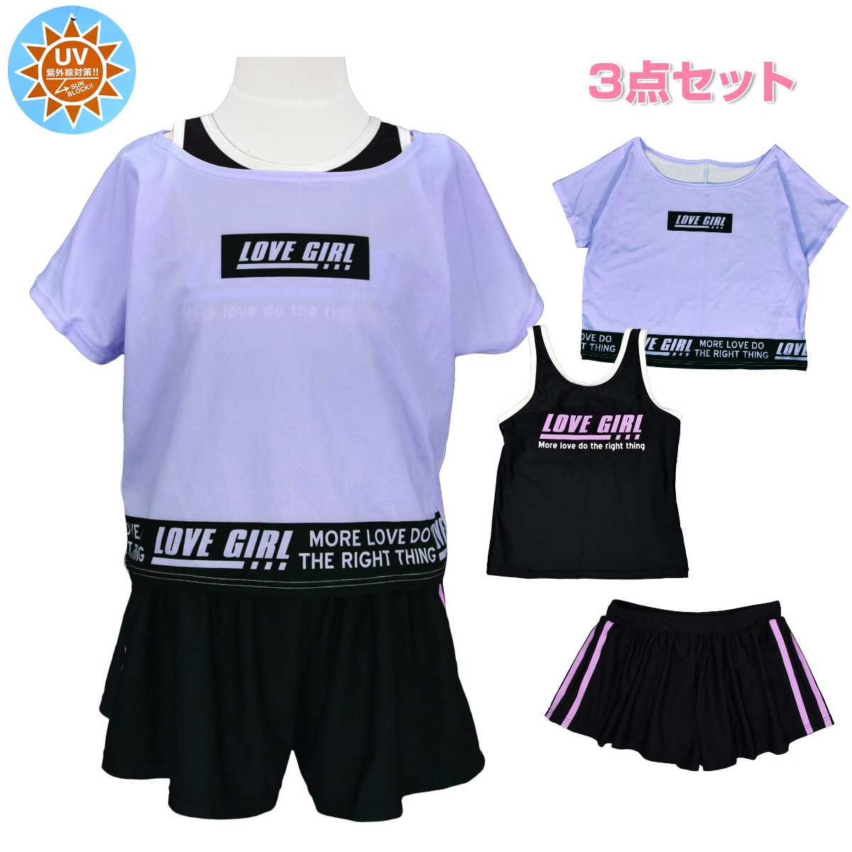 カバーアップ付 タンキニ水着 3点セット 女の子 子供 キッズ ジュニア 3点セット
